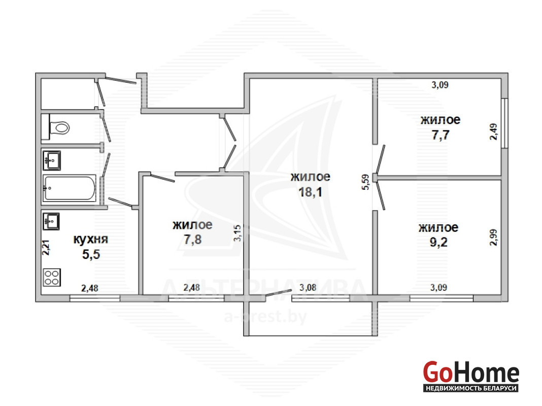 4-комнатная квартира, г. Брест, ул. Янки Купалы, 1968 г.п., 4 / 5 панель, 59,3 / 58,5 / 42,8 / 5,5, санузел раздельный, балкон, подвал, стеклопакеты, деревянные межкомнатные двери, входная дверь деревянная, потолки - снежка, полы - линолеум (в кухне) и паркет, стены оклеены обоями, чугунная ванна, домофон. Квартира в жилом состоянии. Район с развитой инфраструктурой. В шаговой доступности остановки общественного транспорта, школа, сад, магазины. Лот - 260314