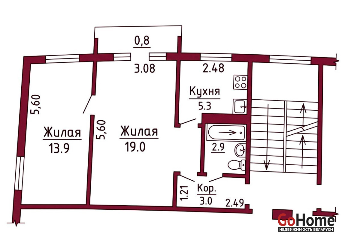 3 этаж 5-тиэтажного дома 1966 года постройки, материал стен – панель. Функциональная планировка, общая площадь 44.1 кв.м., жилая 32.9 кв.м. Окна – ПВХ. Сан. узел совмещенный, облицован плиткой, подогрев воды-газовая колонка. Материал полов – доска, материал стен-обои.