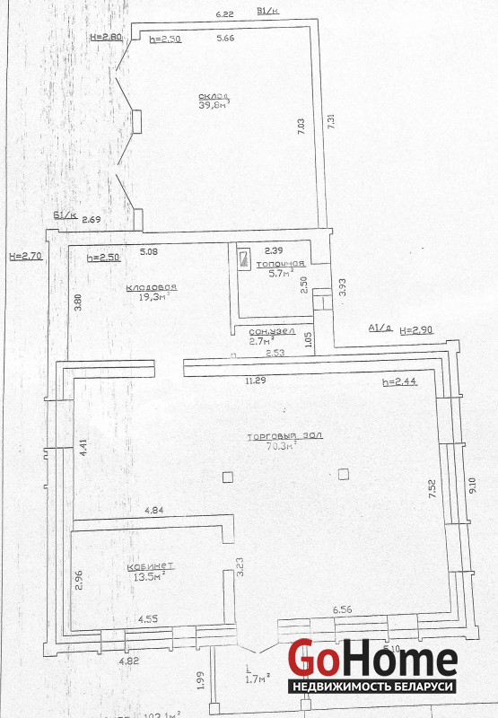 Помещение включает торговый зал (площадь-70,3 м2), два изолированных помещения (13,5 м2 и 19,3 м2), топочная и санузел. Все коммуникации центральные. Имеются оборудованные складские помещения с отдельным асфальтированным въездом. Хороший подъездной пусть к строению.