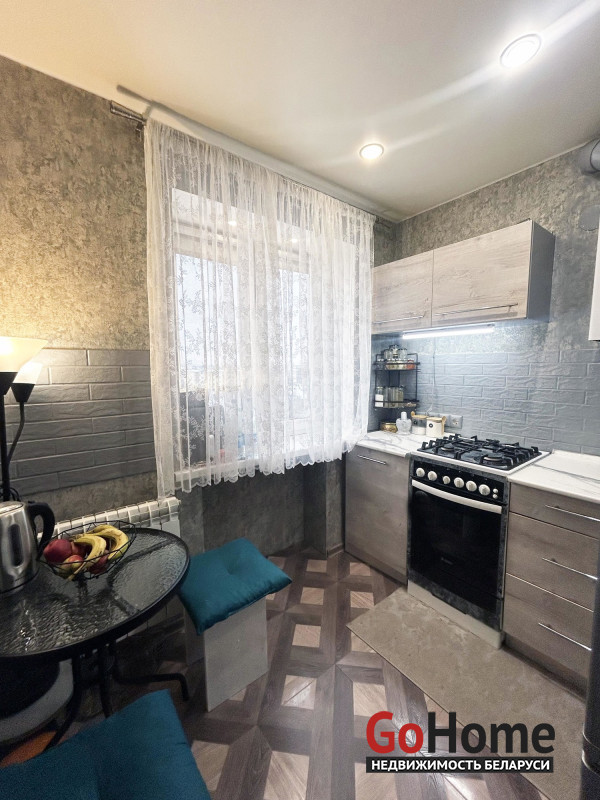 Квартира теплая, светлая, с хорошим ремонтом. Заменена электрическая проводка, канализационные трубы. Установлены окна ПВХ. Металлическая входная дверь. Качественные межкомнатные двери МДФ. Натяжной потолок со встроенным точечным освещением. На полу в комнате – ламинат, в кухне и прихожей – плитка. В комнате и прихожей есть вместительные удобные шкафы-купе. Совмещенный санузел облицован плиткой, сантехника в хорошем состоянии. За квартирой закреплена подвальная ячейка. В доме были произведены работы по ремонту и гидроизоляции кровли.