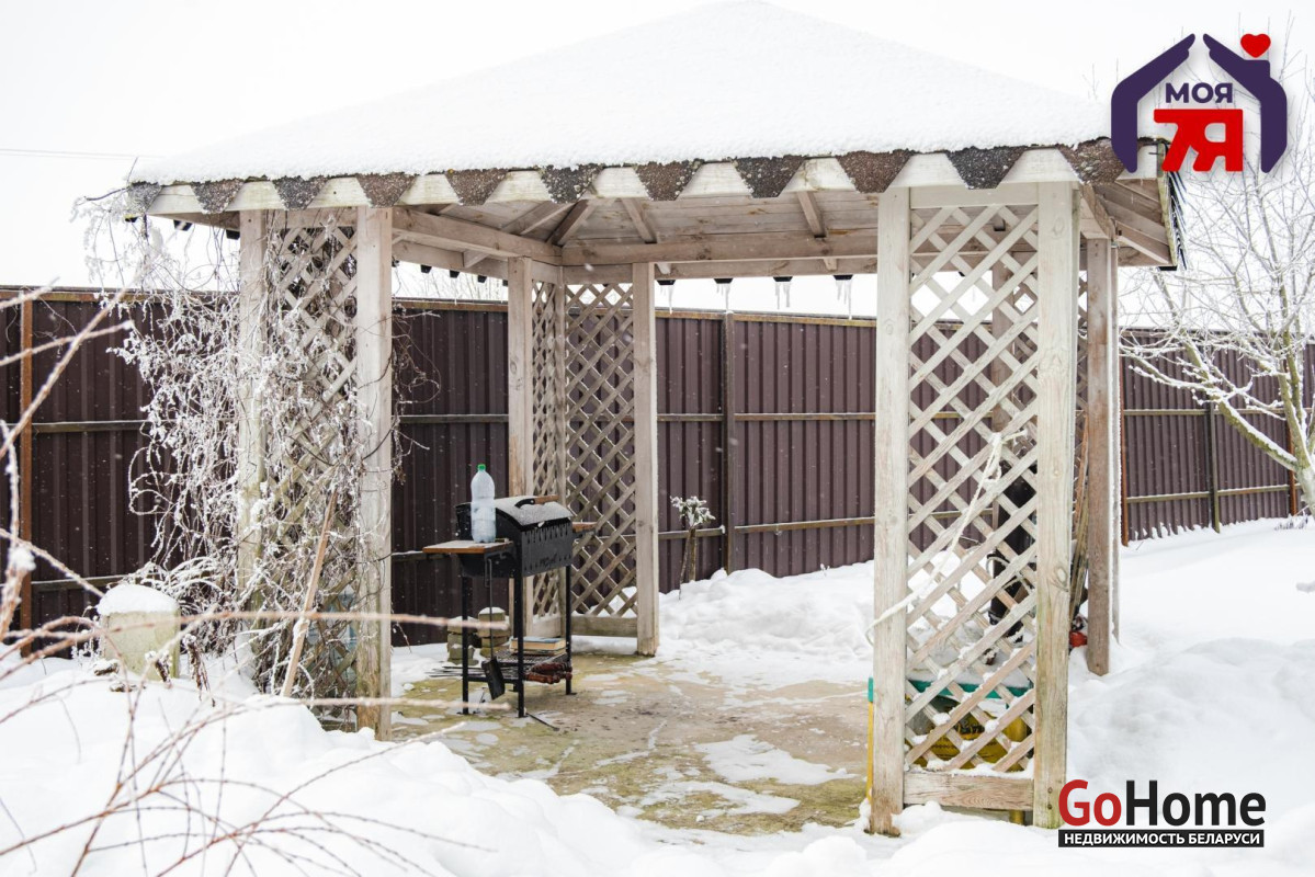 -Дом расположен на участке площадью 15 соток. Территория огорожена, благоустроена и ухожена, предусмотрены удобные подъездные пути. На участке есть беседка и зона барбекю, пространство приватное и спокойное, с ощущением уединения и порядка.