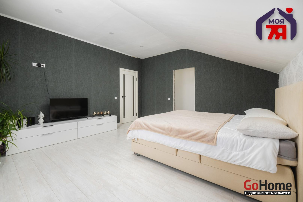 ️Продаётся блочный коттедж 2017 года постройки площадью 111,4 кв.м на участке 15 соток рядом с Фаниполем. Качественный ремонт, просторная гостиная, кухня с техникой, сауна и остеклённая терраса. Удобный транспорт, городской автобус, развитая инфраструктура Фаниполя и спокойная загородная атмосфера.