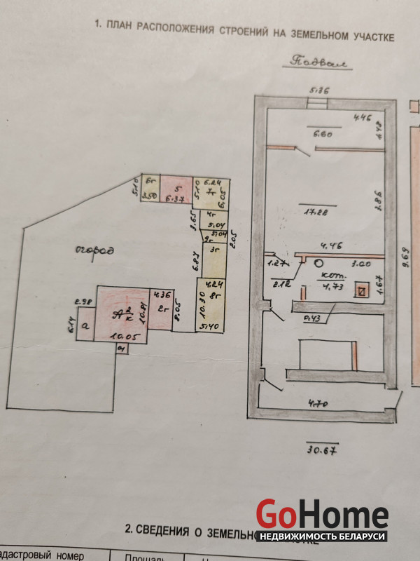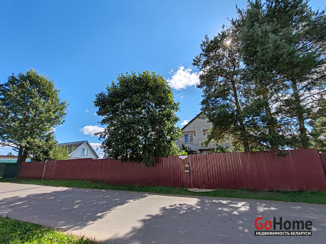 Ровный земельный участок размером 0,16 га. огорожен по периметру забором из металлопрофиля, имеются распашные ворота для заезда на участок и отдельно в гараж. На участке расположены хозпостройки, два парника, растут плодово-ягодные насаждения.