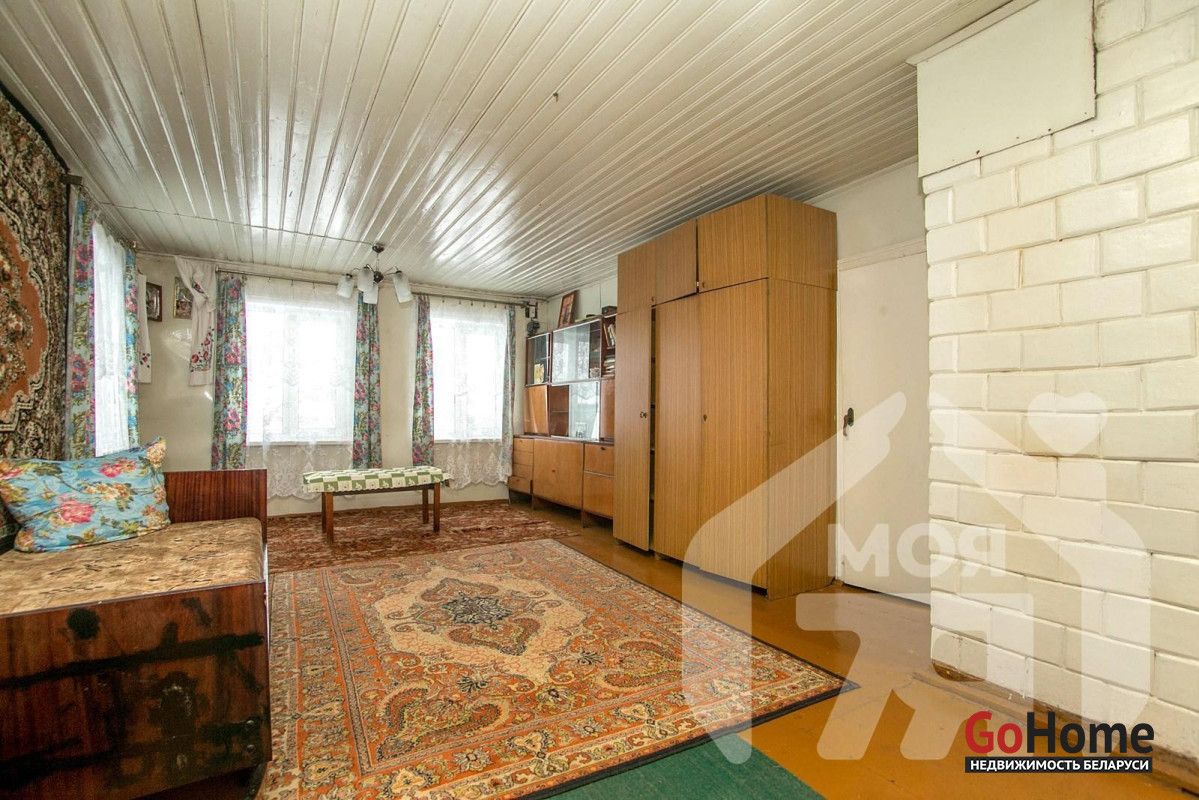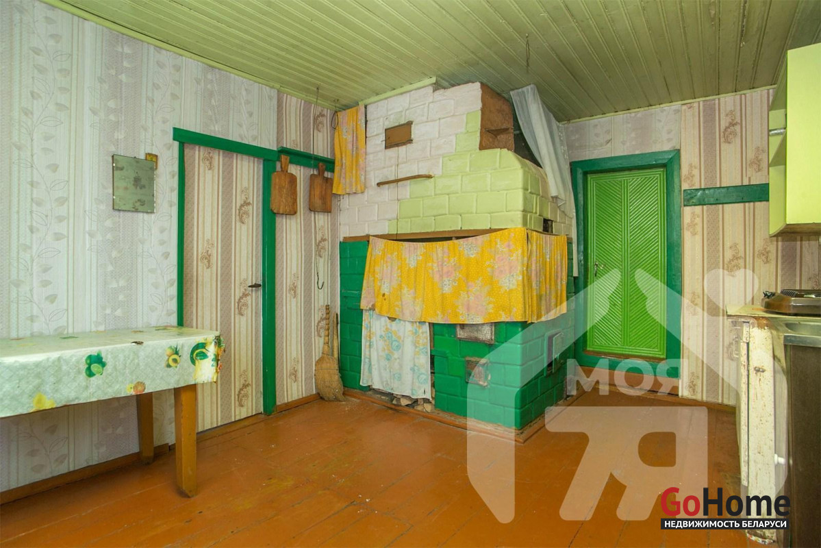 - Общая площадь дома составляет 61,4 м2, жилая 52 м2, кухня 7 м2. В доме есть электричество, подача воды организована из колодца насосом. Печное отопление.