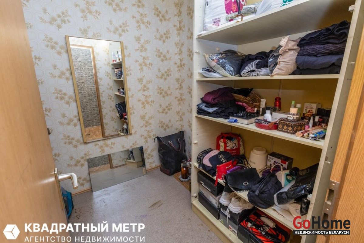 Отдельное преимущество квартиры — гардеробная. Она позволяет хранить одежду, обувь и бытовые вещи в одном месте, освобождая комнаты от громоздких шкафов и делая пространство более аккуратным и удобным.