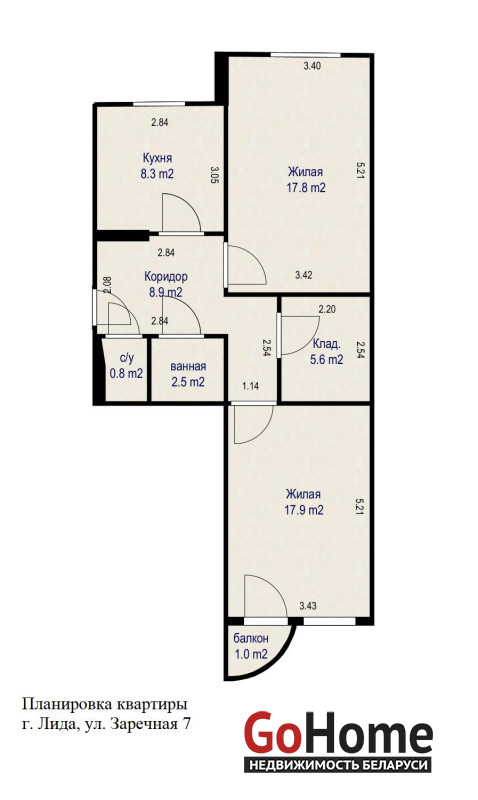 Две большие комнаты площадью 17,8 м2 и 17,9 м2 дают возможность легко разместить полноценную гостиную и уютную спальню, рабочую зону или детскую. Просторные комнаты обеспечивают больше света и воздуха, а также позволяют гибко оформить интерьер.