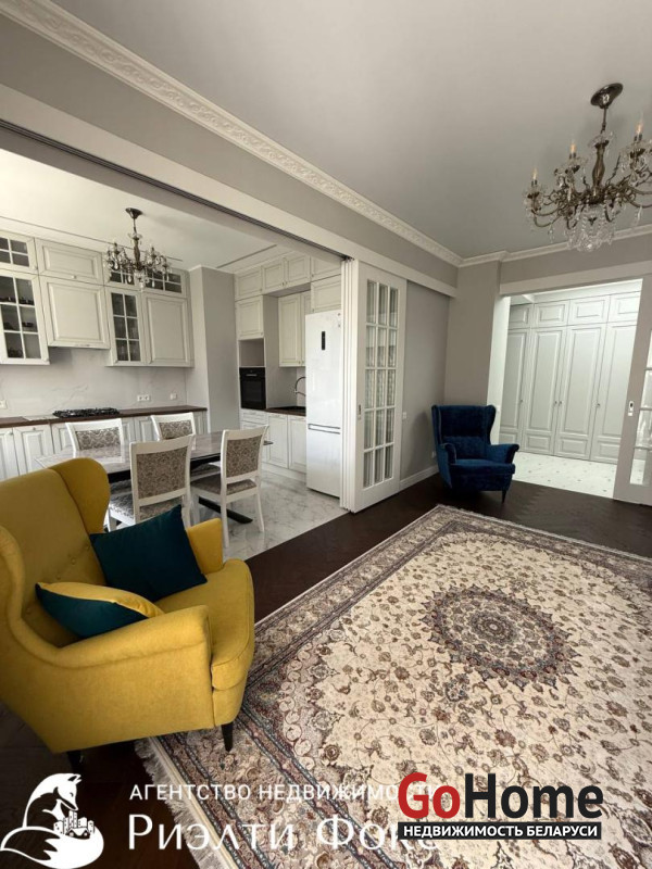 Квартира полностью укомплектована всей необходимой мебелью и техникой (посудомоечная машина, стиральная машина с функцией сушки, водонагреватель, холодильник). На полу в квартире - паркет (дуб) и плитка керамогранит. Обеденный стол выполнен из керамогранита. Размер кровати - 1800*2000, в спальне есть вместительная гардеробная. В квартире много мест для хранения. Толщина стен - 50 см, высота помещений - 2,95 м., есть балкон. Окна квартиры выходят на две стороны. Квартира готова к заселению.