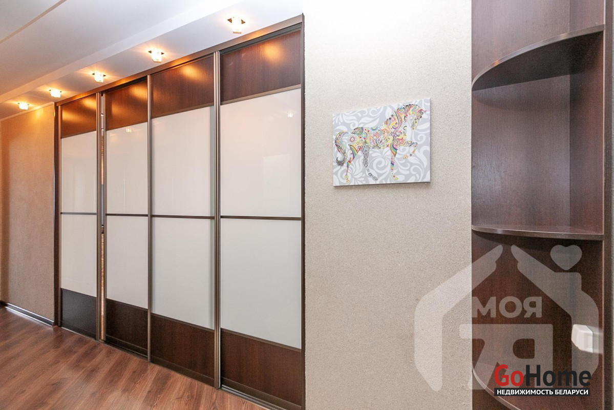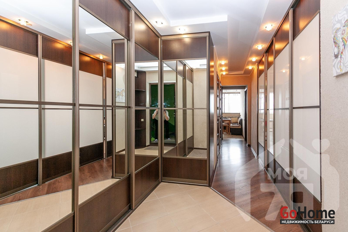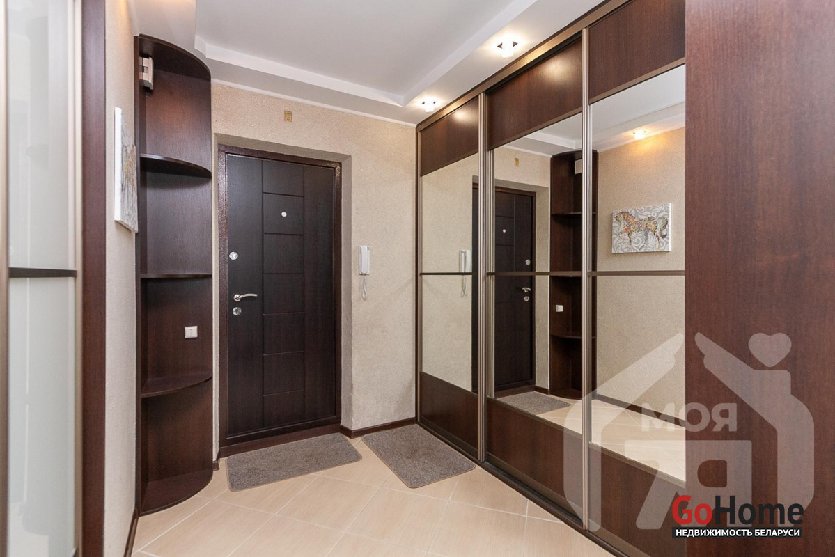 - Вместительная и функциональная прихожая 12,5 м2 с большим зеркальным шкафом-купе и дополнительными зонами хранения.
