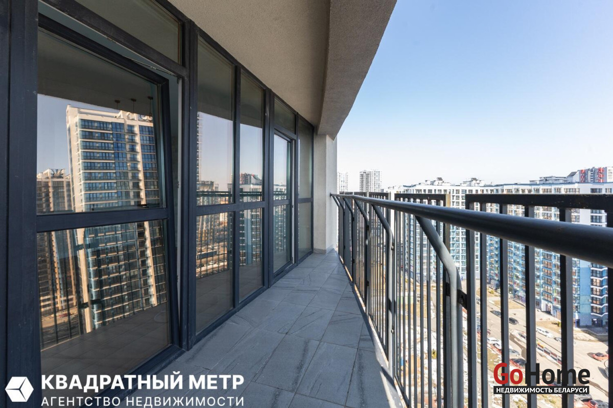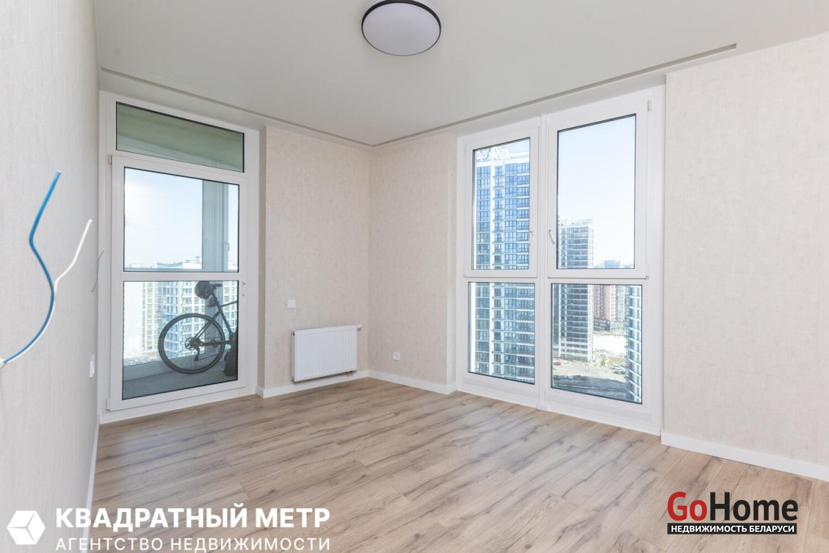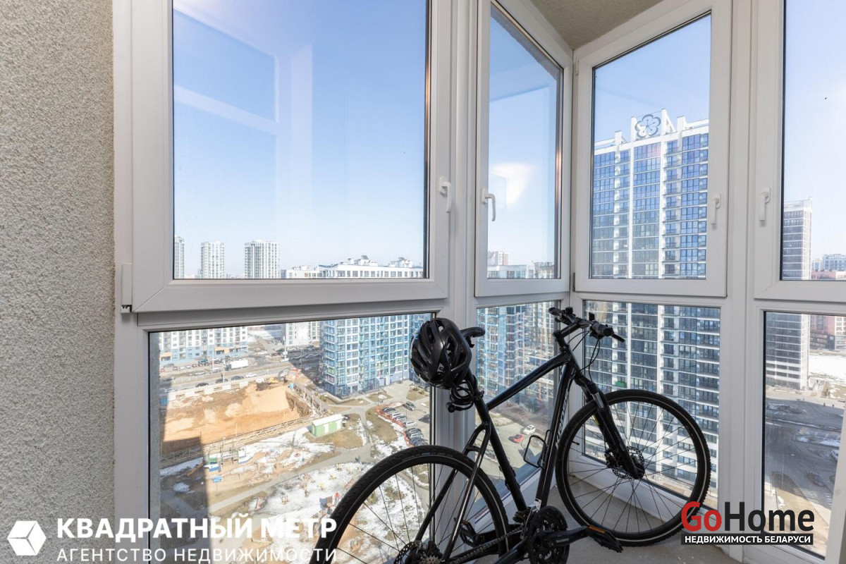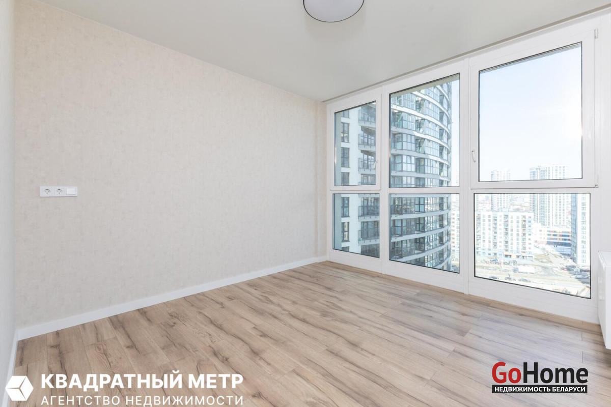 Две изолированные спальни и большая гостиная с кухонным оборудованием с панорамным остеклением на всю стену. Раздельный сан. узел. Две просторные лоджии.
