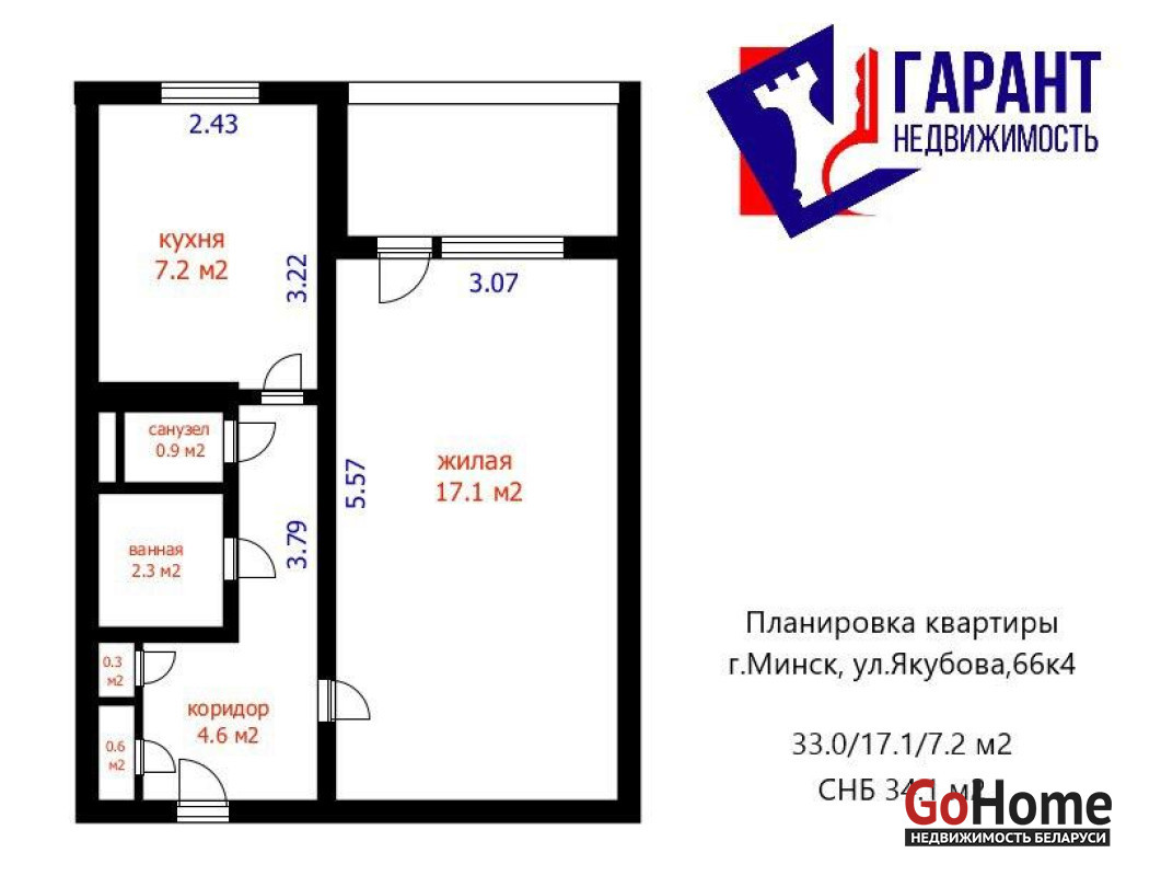 · Общая площадь: 33.0 м2