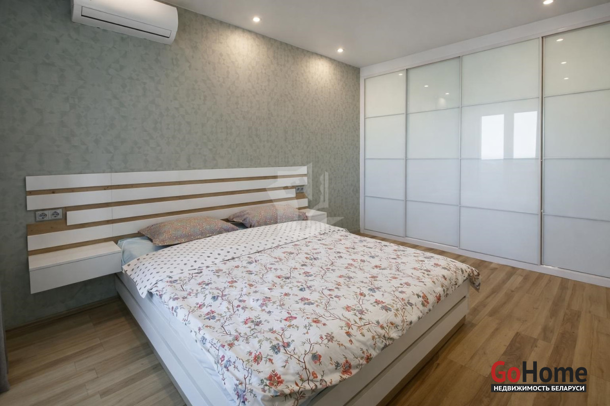 Уютная спальня с большой кроватью и вместительным шкафом