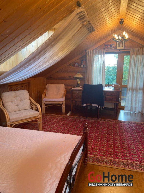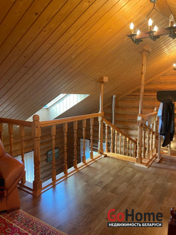 На живописном берегу этого уникального водоема расположен дом из оцилиндрованного вручную бревна (диаметр — 380 мм). Одноэтажный с мансардой "в свету" и уютным балконом с потрясающим видом на озеро. Общая площадь дома — 168 м².