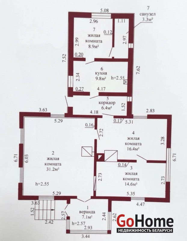 Дом 1-этажный, частично обшит сайдингом, 4 жилые комнаты, совместный санузел, общая площадь дома 91/жилая 76/кухня 8,3 м/кв.