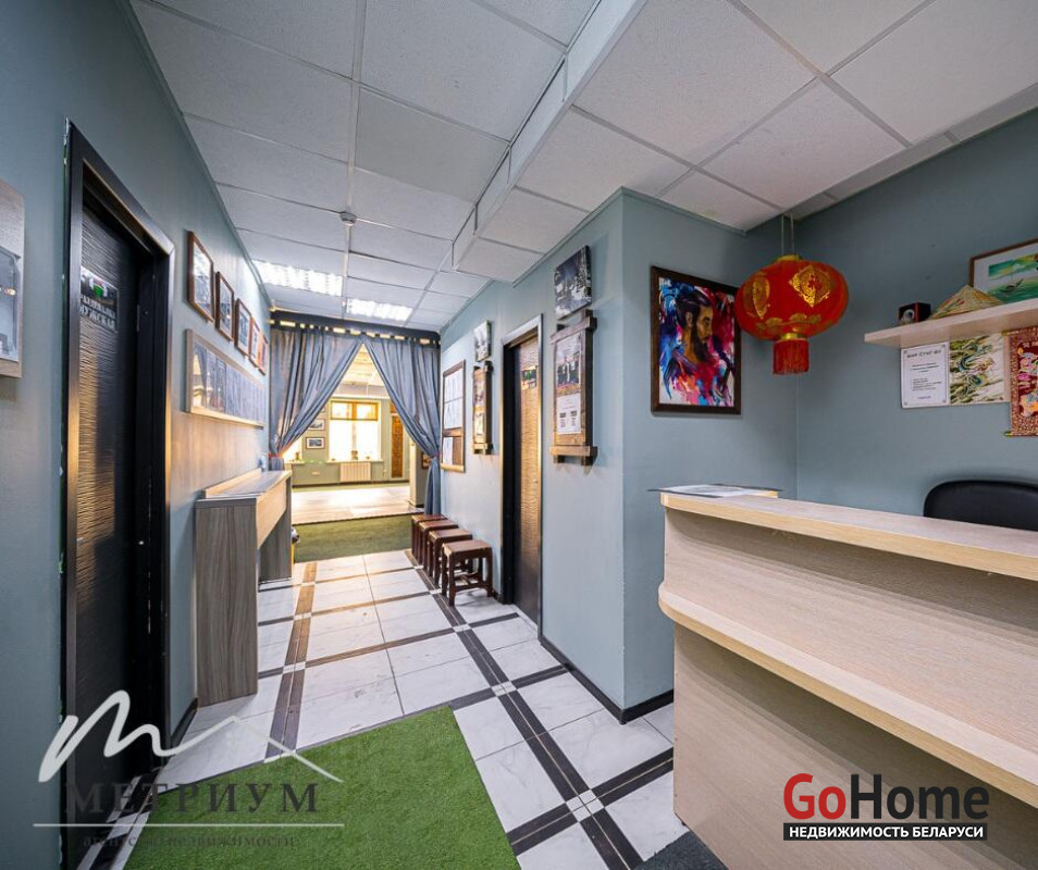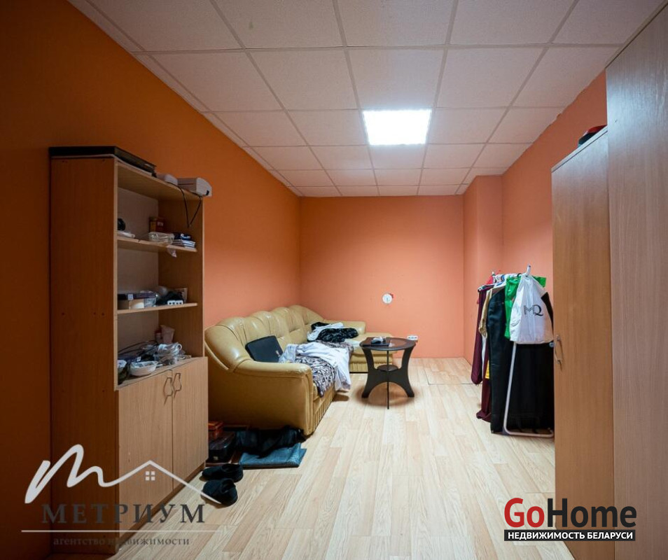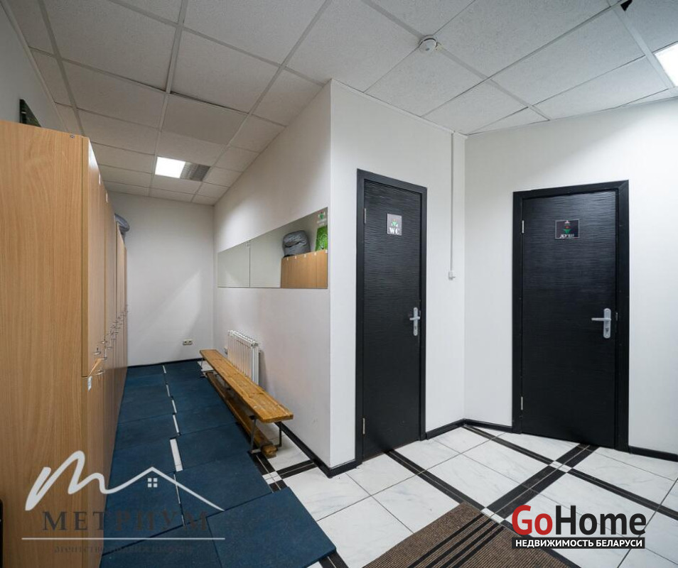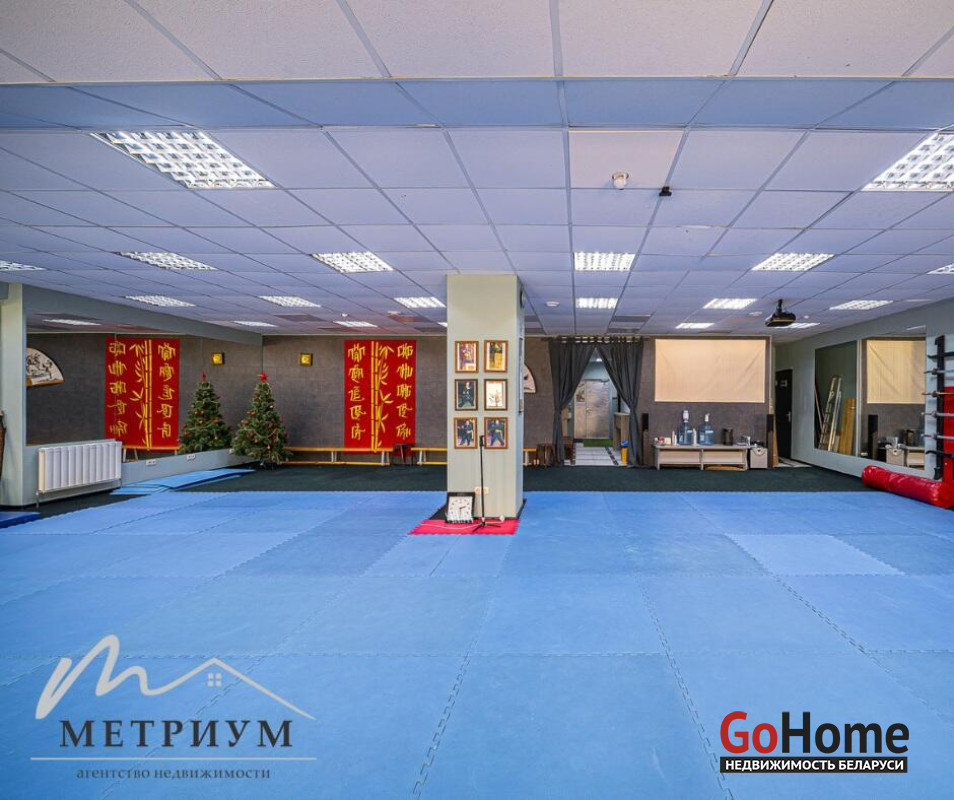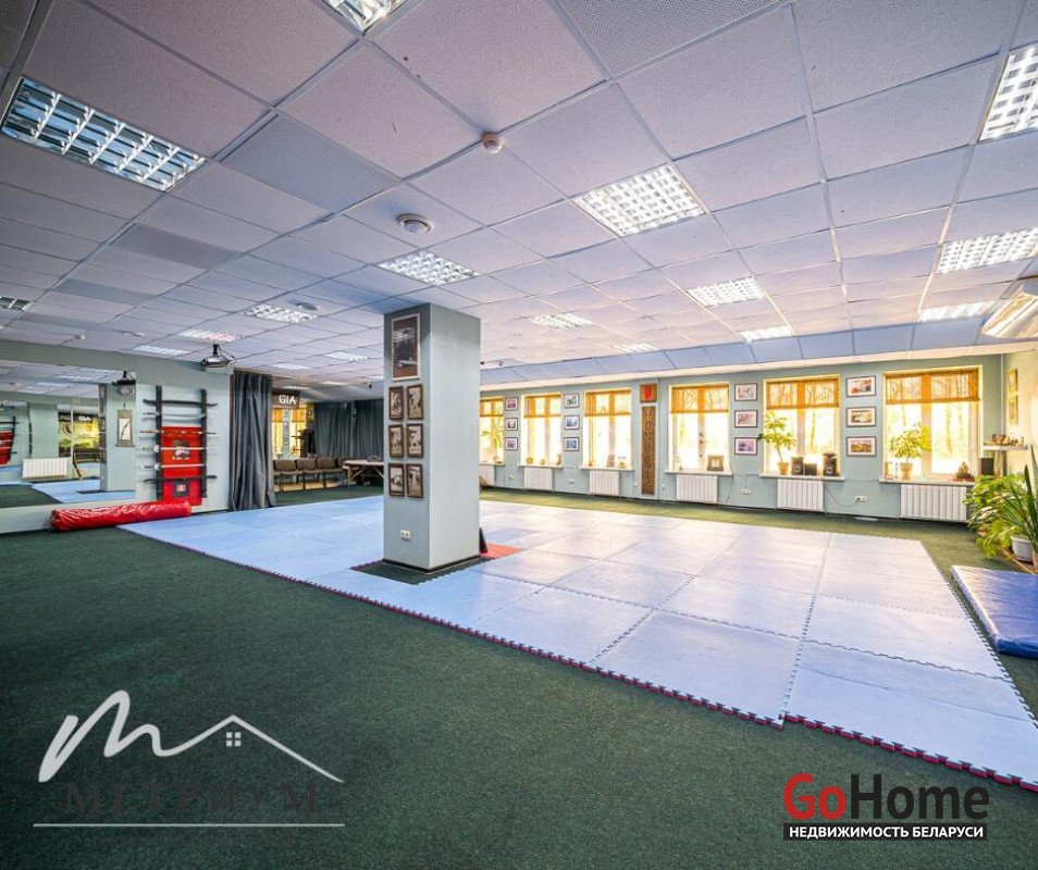 В помещении выполнен ремонт: потолок ARMSTRONG, на полу ковролин, стены под покраску. Просторный зал правильной формы с множеством окон и естественным освещением. Оборудован сан. узел, душевые, проведены все коммуникации.