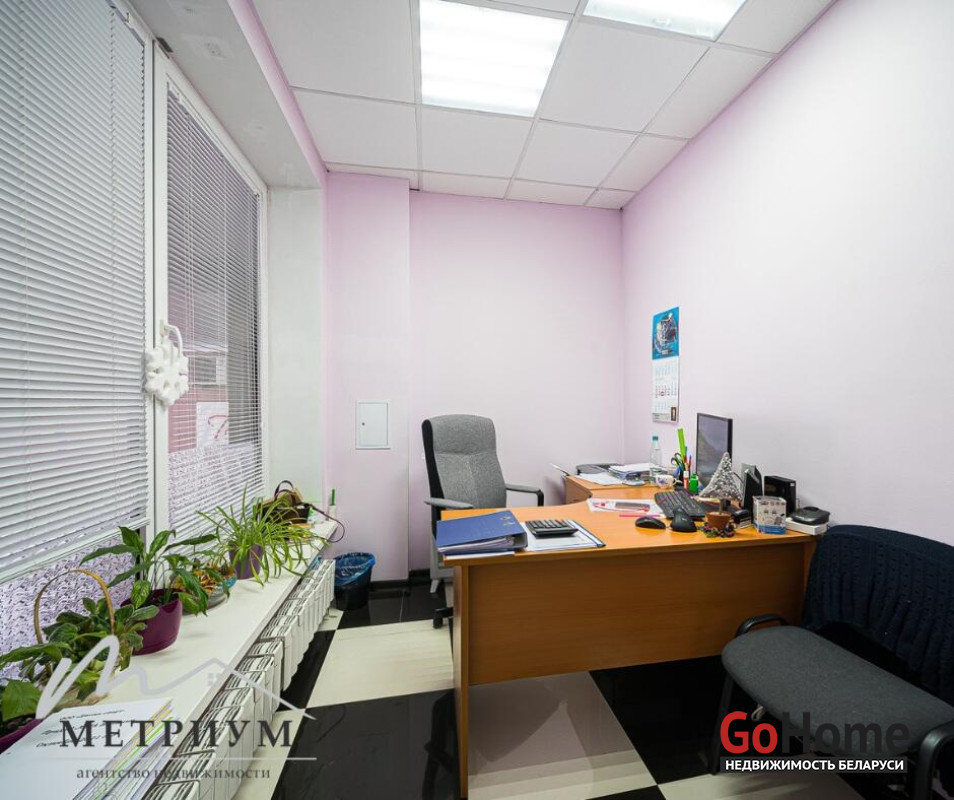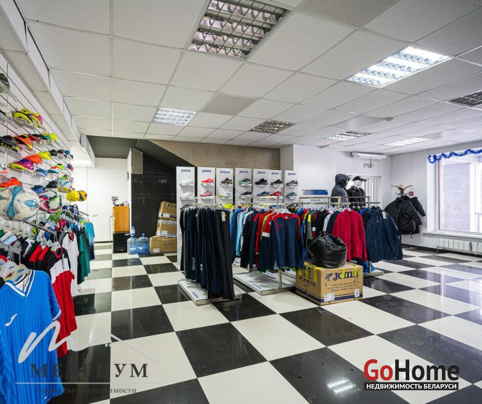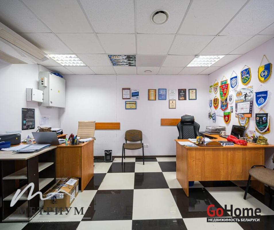 В помещении выполнен ремонт: потолок ARMSTRONG, на полу ковролин, стены под покраску. Просторный зал правильной формы с множеством окон и естественным освещением. Оборудован сан. узел, душевые, проведены все коммуникации.