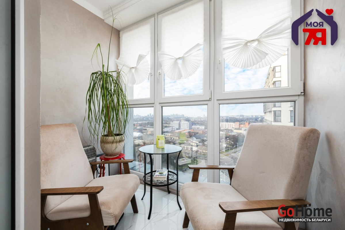 - Лоджия застеклена и утеплена, оборудована зоной отдыха.