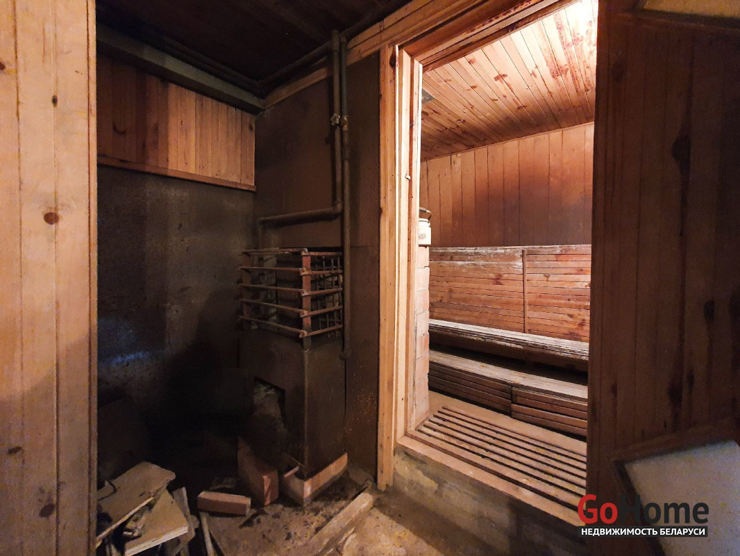 Батареи разведены на два этажа. Также есть печь, которая отапливает два этажа. На первом этаже сделана печь-плита, на втором - камин. Есть погреб.
