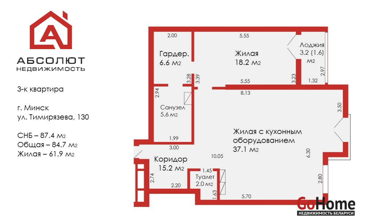 Квартира с свободной планировкой и высокими потолками (3 м), что позволяет создать индивидуальный дизайн.