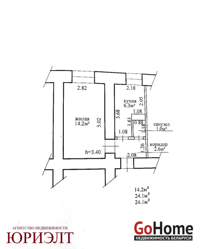 Общей площадью 24.1 м2, жилая 14.2м2, кухня 6.3 м2. Квартира расположена на 1 этаже 2-этажного кирпичного дома, с готовым, качественным ремонтом. Квартира продаётся с мебелью, техникой (деревянными элементами ручной работы)