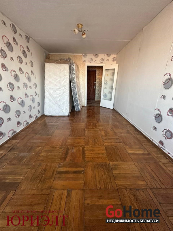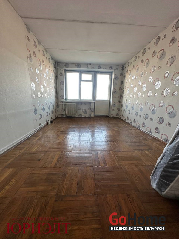 Просторная комната с деревянным паркетным полом в отличном состоянии.