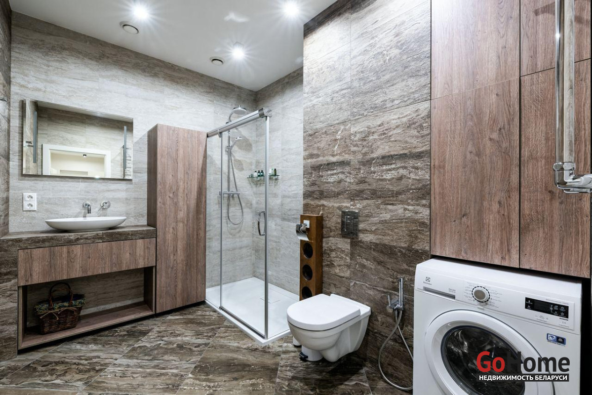 Качественный ремонт, только импортные и дорогостоящие материалы. Немецкая сантехника, итальянская плитка, мебель изготовлена по индивидуальному заказу. Гостиная совмещена с кухней. Есть посудомоечная машина, фильтр для очистки воды, система кондиционирования, пол с подогревом.