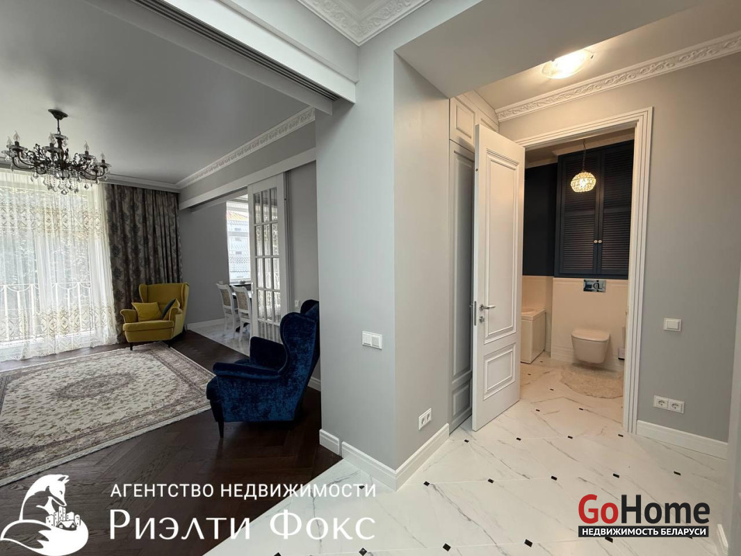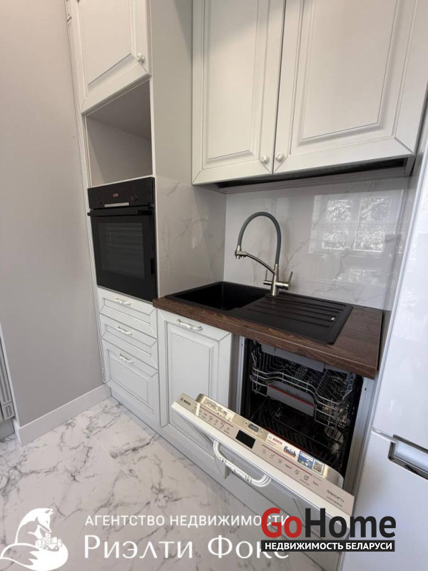 Квартира полностью укомплектована всей необходимой мебелью и техникой (посудомоечная машина, стиральная машина с функцией сушки, водонагреватель, холодильник). На полу в квартире - паркет (дуб) и плитка керамогранит. Обеденный стол выполнен из керамогранита. Размер кровати - 1800*2000, в спальне есть вместительная гардеробная. В квартире много мест для хранения. Толщина стен - 50 см, высота помещений - 2,95 м., есть балкон. Окна квартиры выходят на две стороны. Квартира готова к заселению.