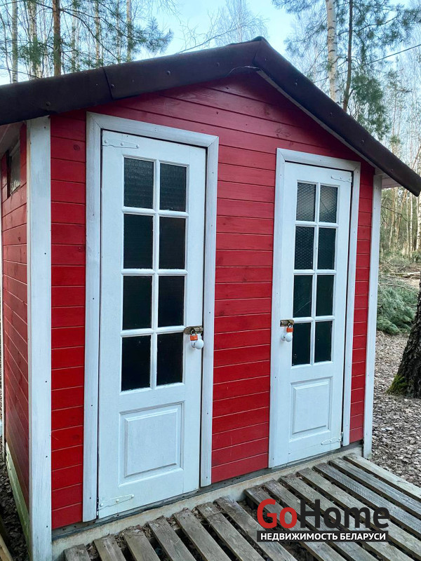 На территории имеются металлическая утепленная бытовка, которая используется для проживания в сезон, а также симпатичный душ с уличным туалетом.