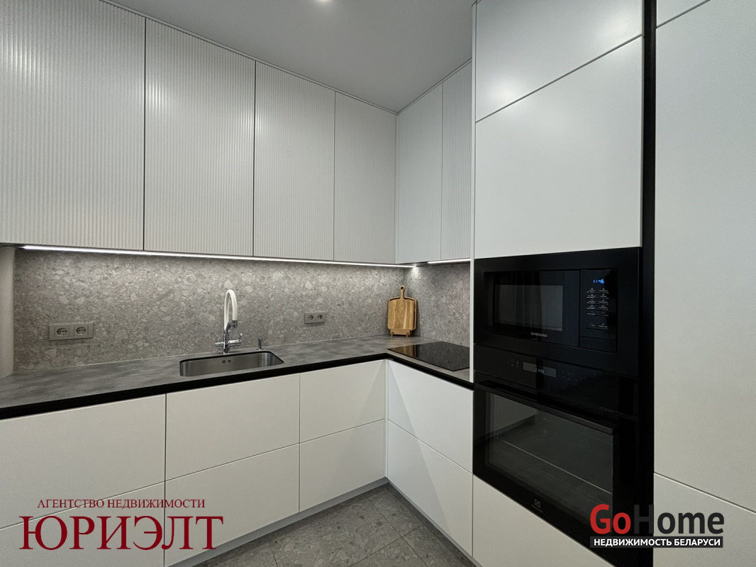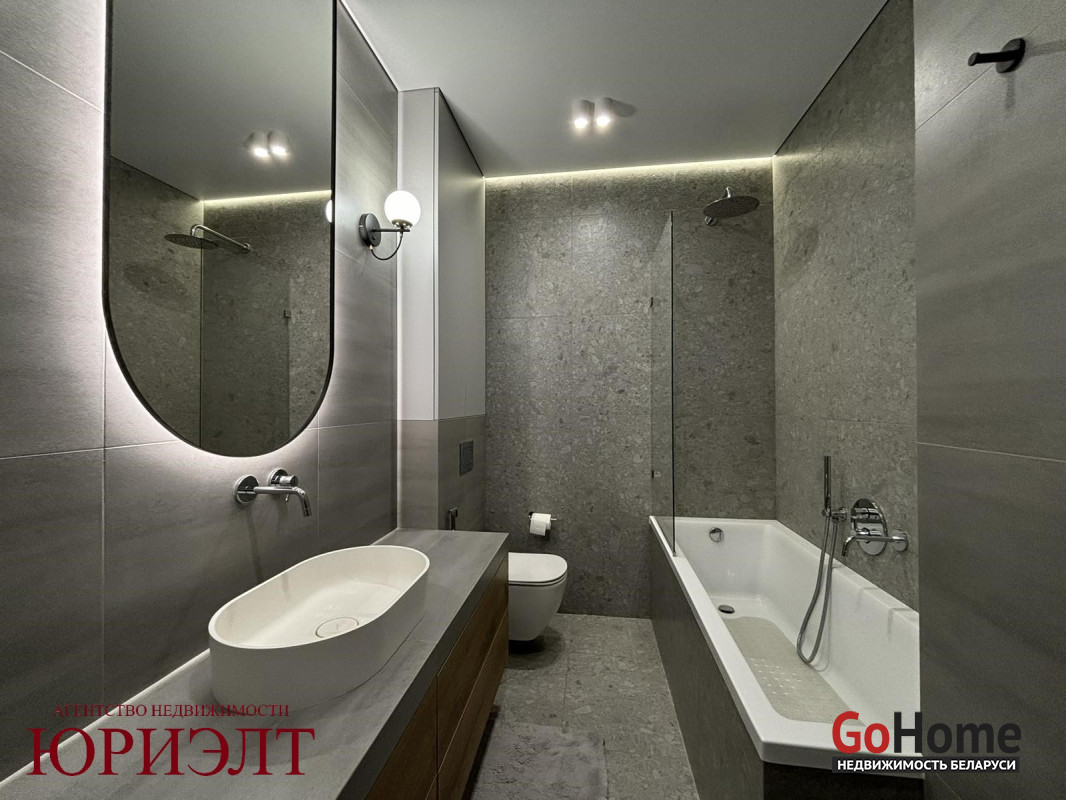 Кухня оснащена итальянским гарнитуром Stasa Cucine, фурнитурой Blum и встроенной техникой от ведущих производителей. Ванная комната оформлена керамогранитом, с инсталляцией для скрытия коммуникаций и тропическим душем. Установлена итальянская сантехника Paffoni.