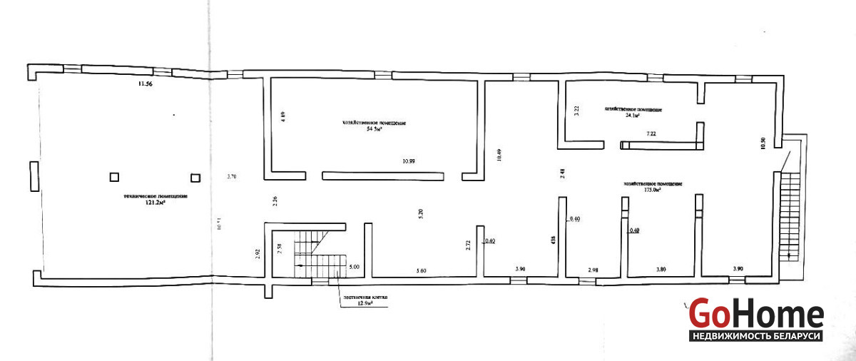 На цокольном этаже (374,8 кв.м) располагается гараж (121,2 кв.м.) и много помещений которые можно использовать как под склад (54,5кв.м, 24,1кв.м,175,0кв.м), также и сдавать в аренду. Можно использовать так же под небольшое производство.