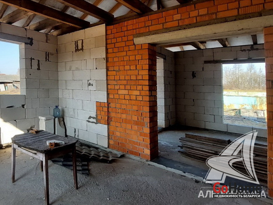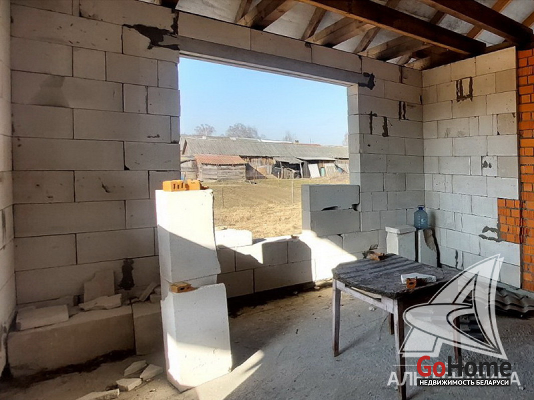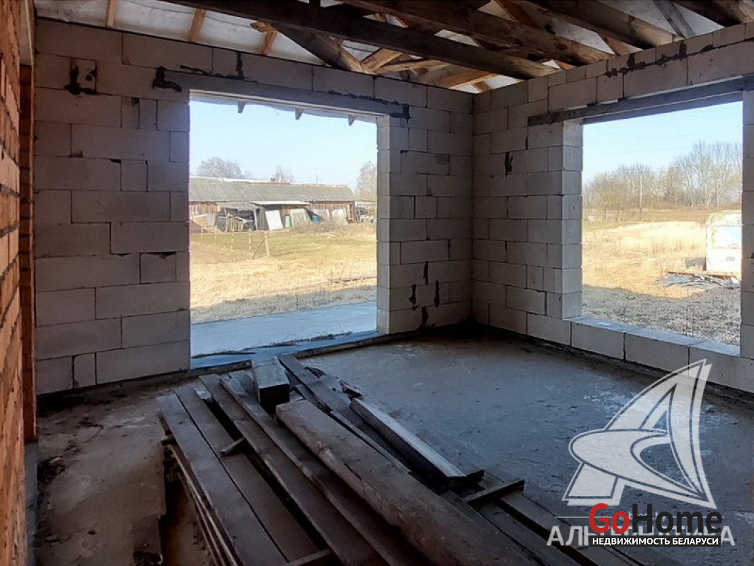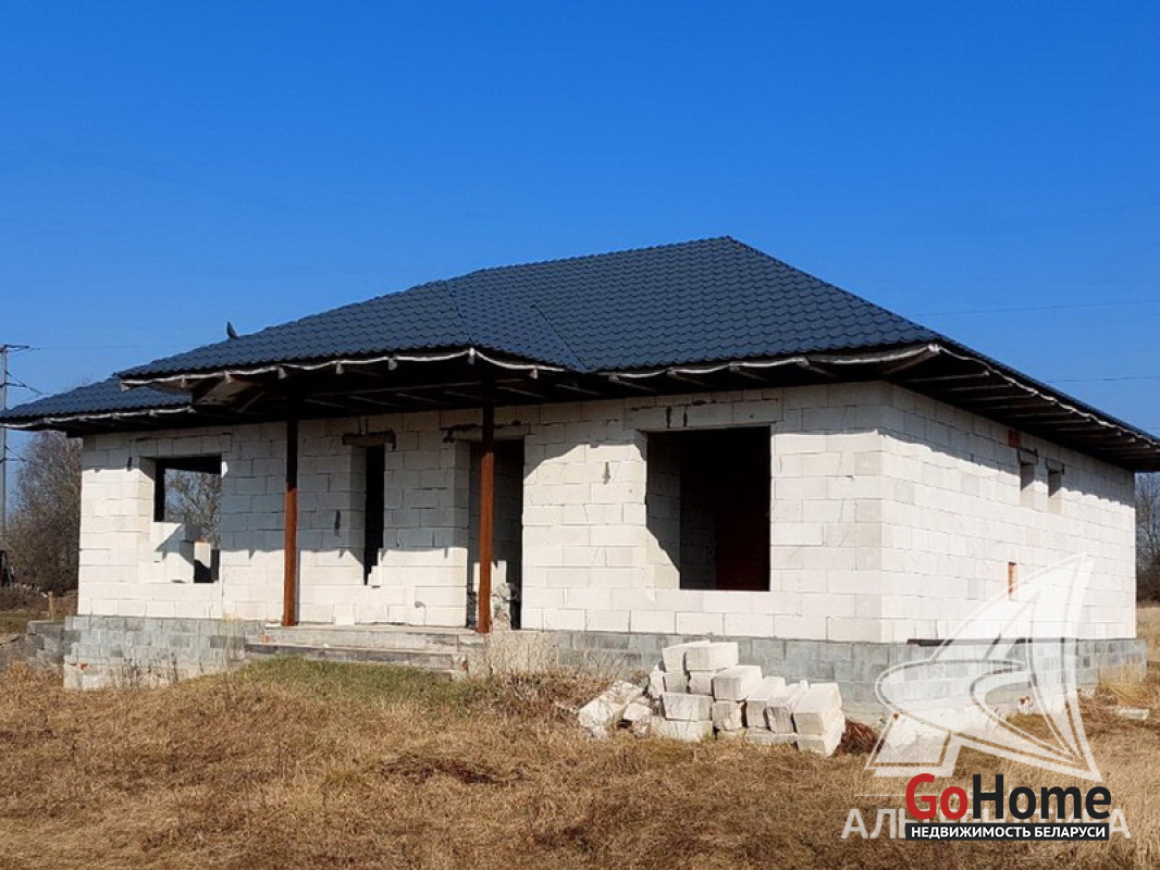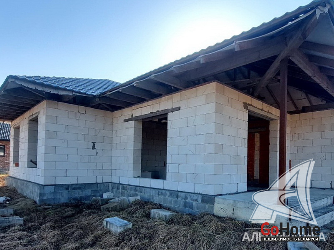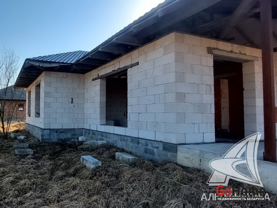 Коробка жилого дома в Брестском р-не. 2022 г.п. 1 этаж. Общ.СНБ - 133,0 кв.м, общ.- 111,5 кв.м, жил.- 61,9 кв.м, кух.- 23,8 кв.м. 3 комнаты, высота потолка - 2,92 м.