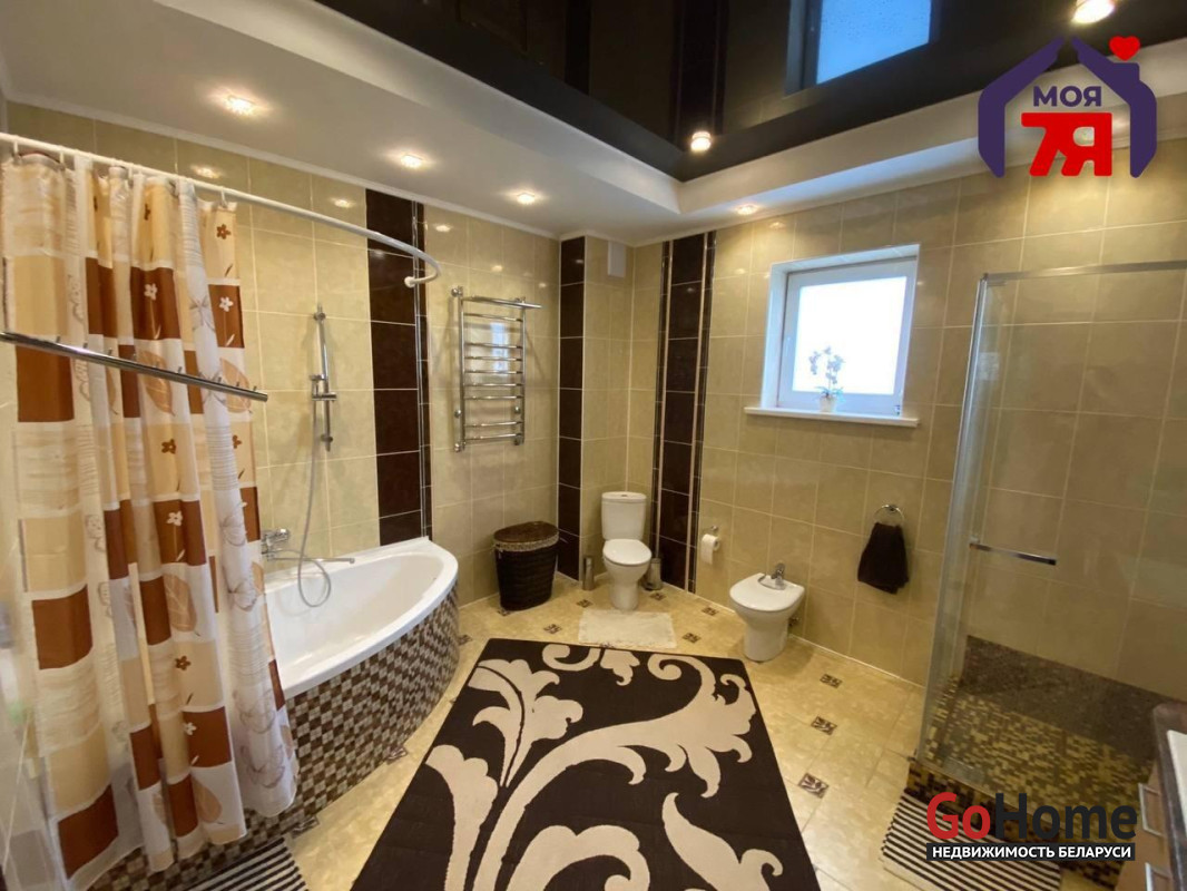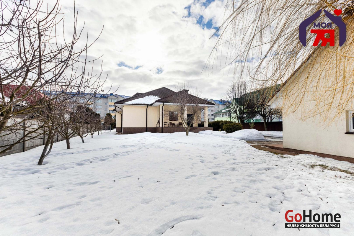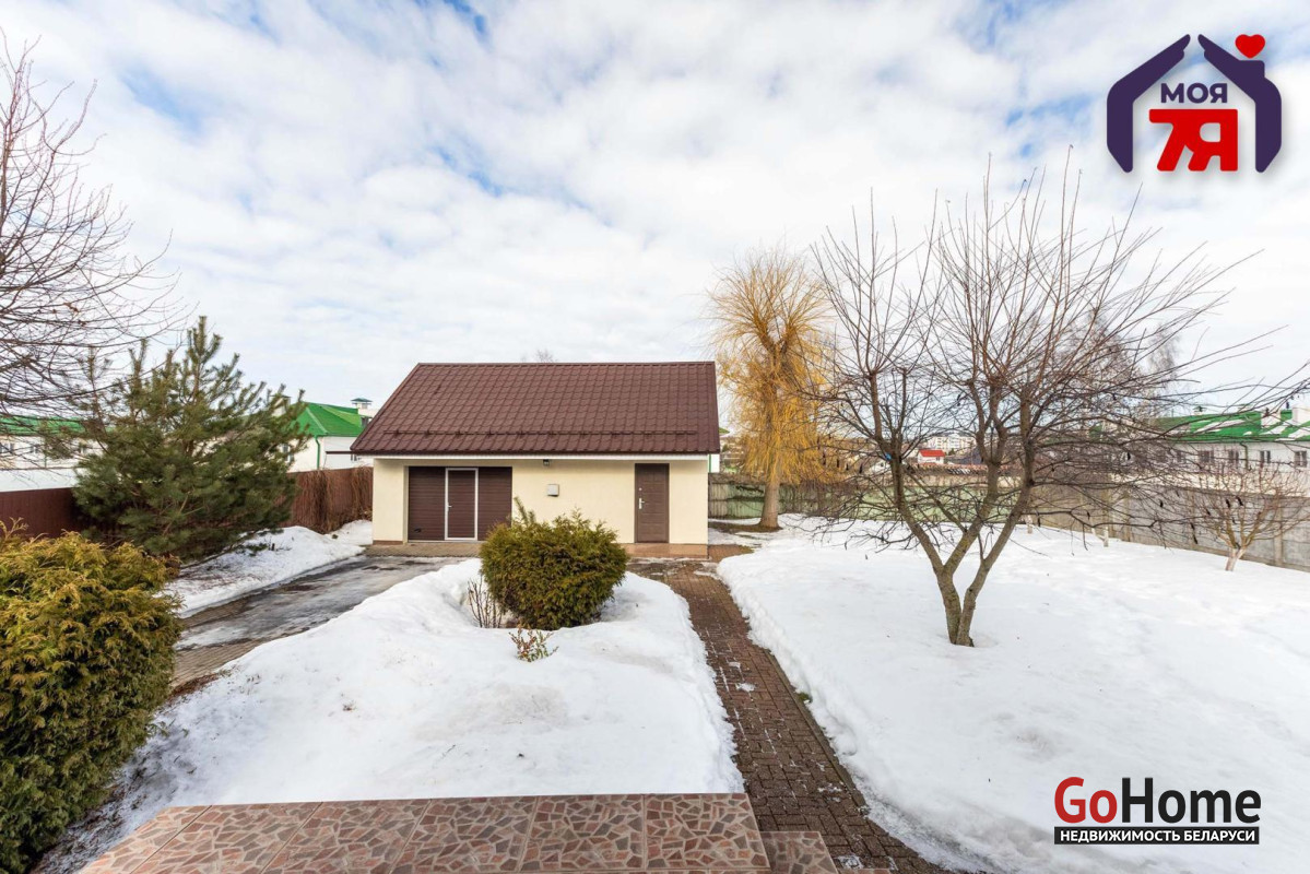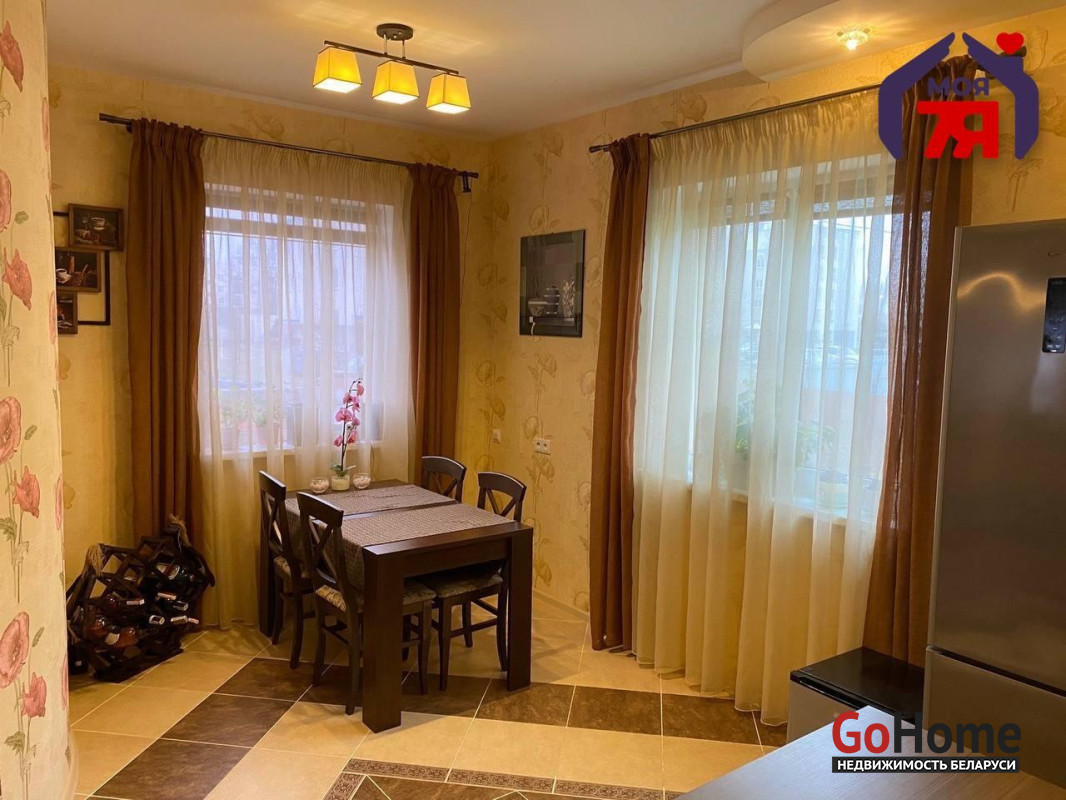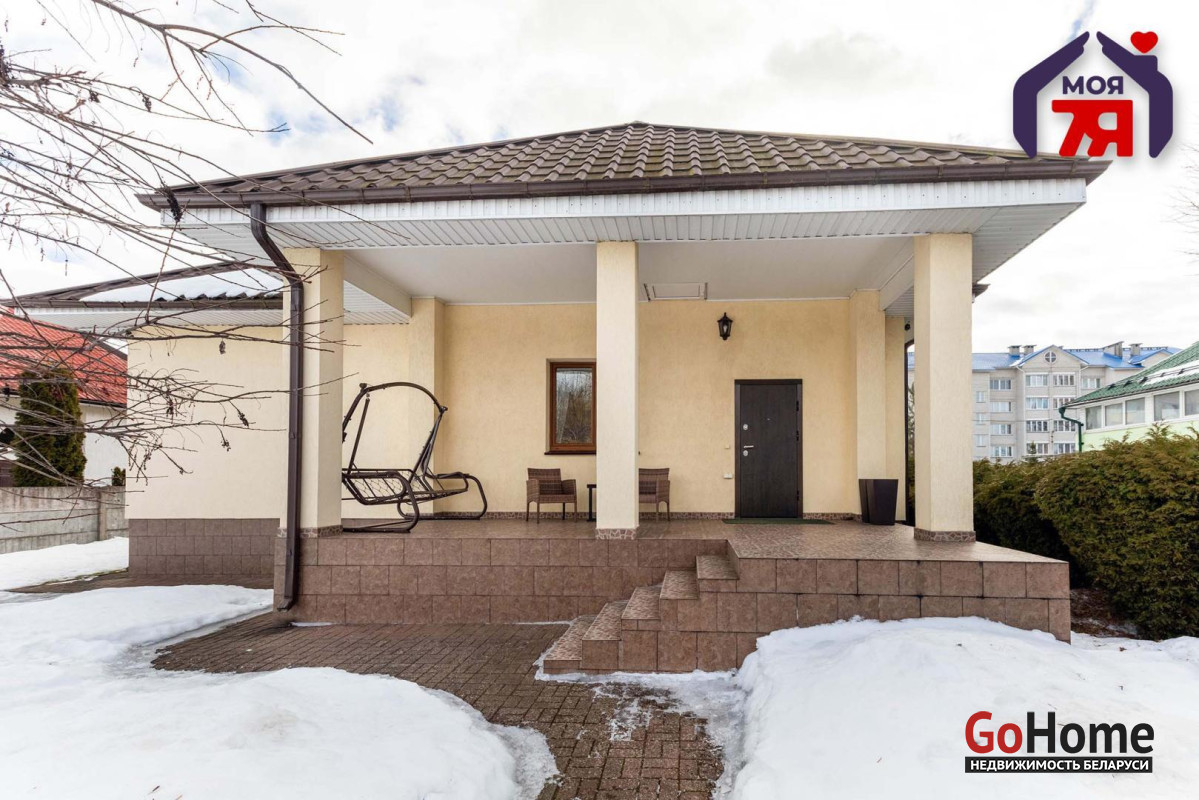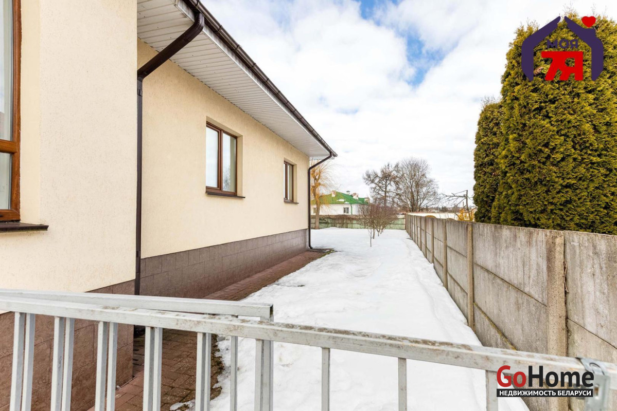 -Силикатно-блочный коттедж 2014 года постройки общей площадью 155,1 кв.м. с четырьмя жилыми комнатами, террасой и участком 11 соток — в городе с развитой инфраструктурой, в 28 километрах от минской кольцевой.