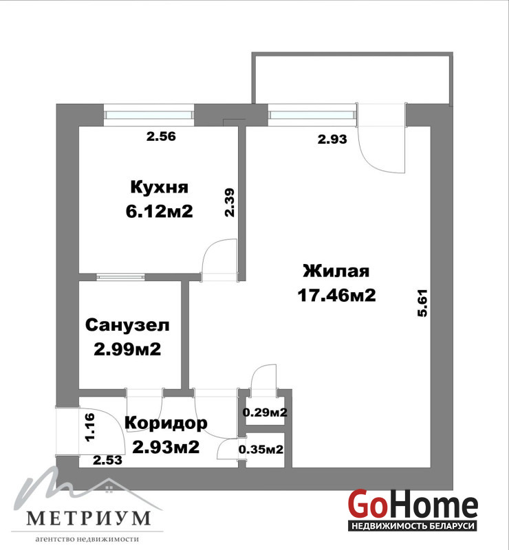 1 - комнатная квартира 30,14 м.кв., улица Золотая горка, 15, метро Якуба Коласа. Квартира готова к проживанию.