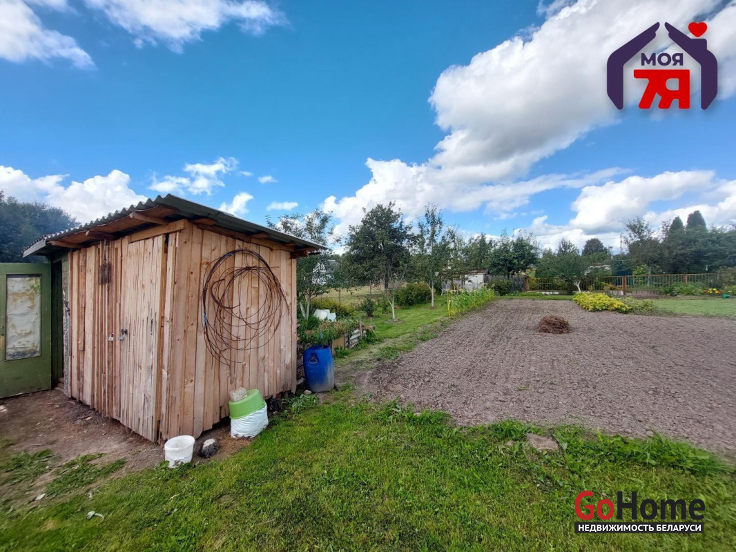 -На участке расположен летний домик площадью 17 кв.м. - каркасно-деревянный, с шиферной крышей. Отлично подойдёт для отдыха или временного проживания.
