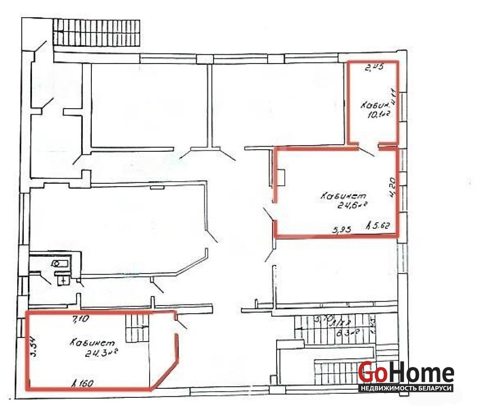 Предлагаем в аренду кабинеты на втором этаже бизнес‑центра — с качественным ремонтом, встроенной мебелью и всеми необходимыми коммуникациями. Возможна аренда, как целиком, так и по отдельности (площади: 10,1 м2, 24,6 м2, 24,3 м2).