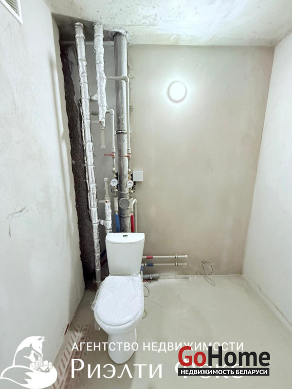 - состояние: квартира тёплая, светлая, подготовлена под чистовую отделку; стены оштукатурены; электрика разведена; сантехника разведена частично; установлен унитаз.