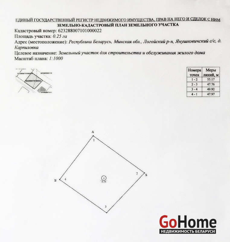 Площадь: 25 соток (0,25 га).