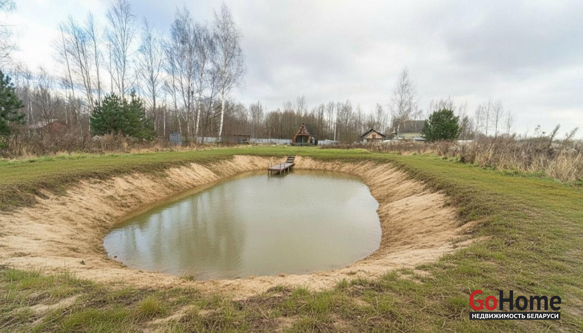 - На дополнительном участке — большой пруд с рыбой