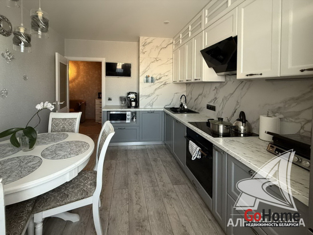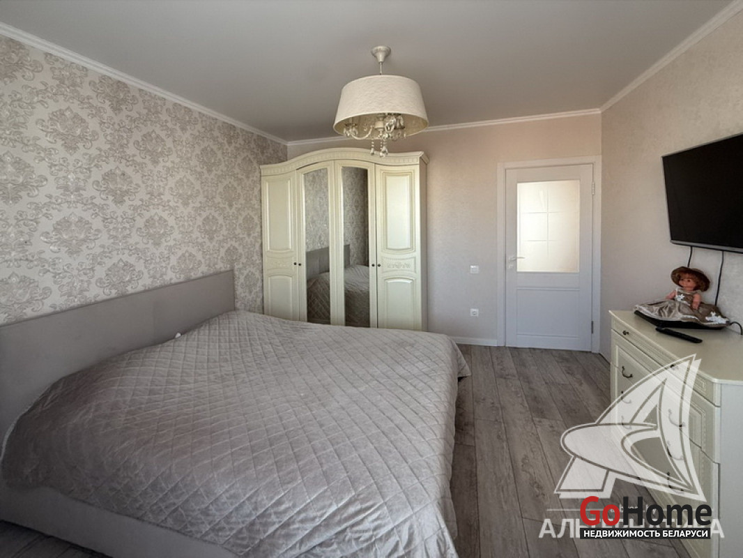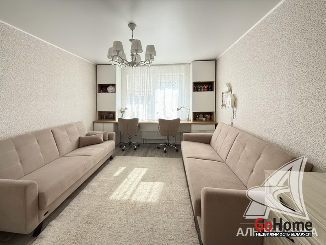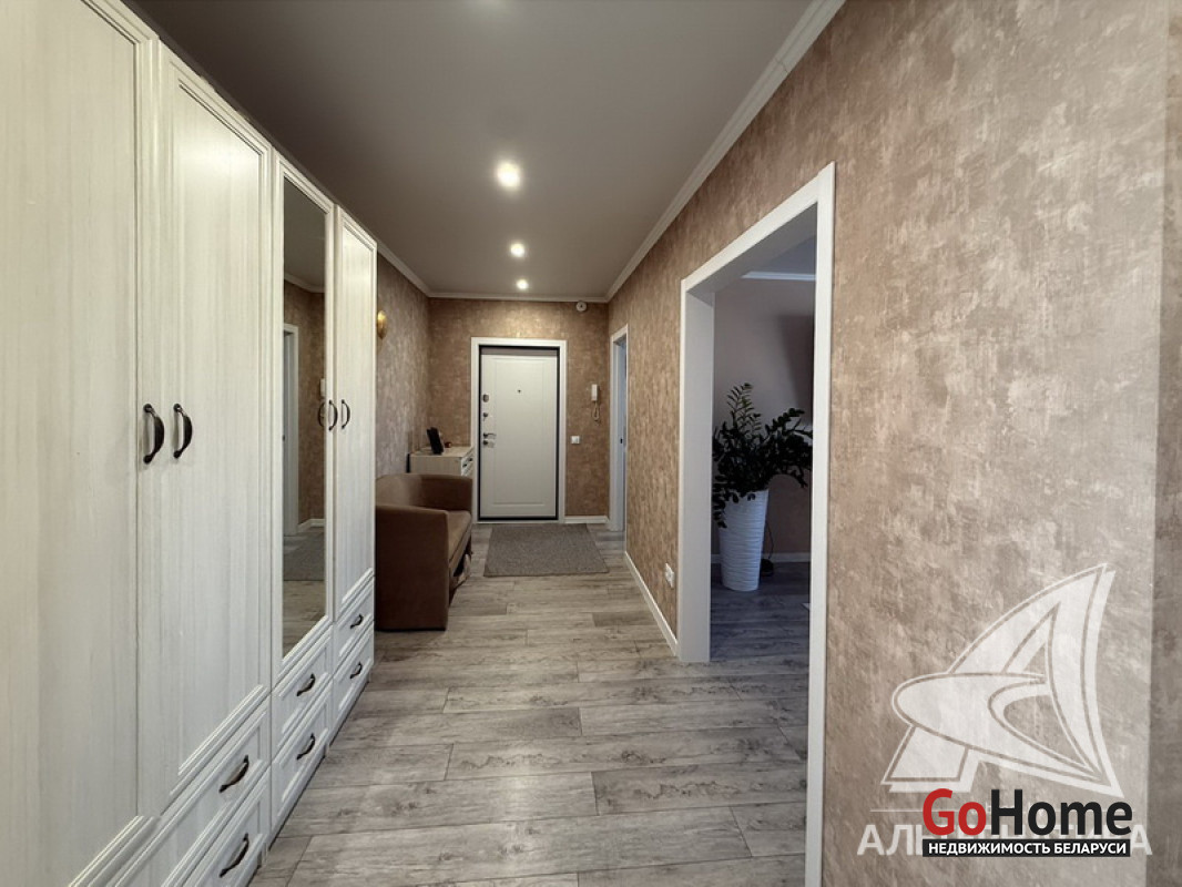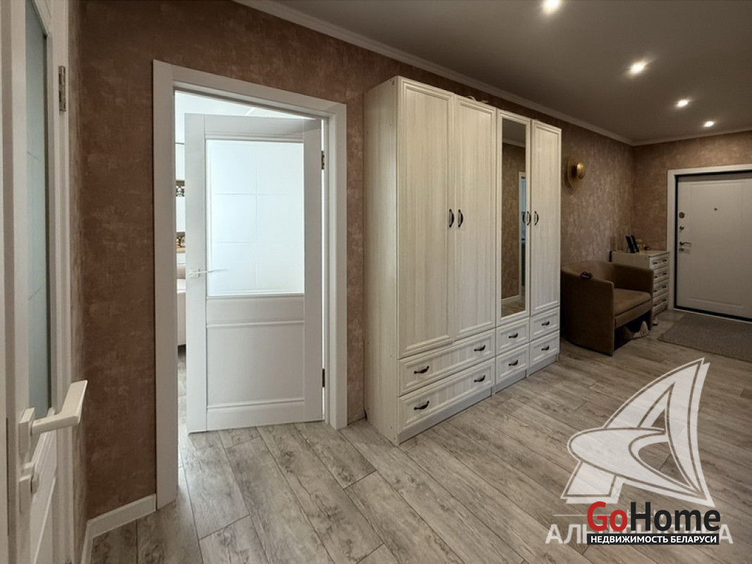 3-комнатная квартира, г. Брест, ул. Колесника, 2021 г.п., 8 / 11 панель, 79,3 / 76,7 / 47,4 / 10,5, санузел раздельный, лоджия застеклена, стеклопакеты, межкомнатные двери - МДФ, натяжные потолки, полы - ламинат, на стенах декоративная окраска (в зале) и обои, в санузле современная плитка, телефон, домофон. Вся мебель и техника по договоренности. Квартира расположена на две стороны. Один пассажирский лифт. Система видеонаблюдения (лифт, подъезд, парковка, двор). Лот - 260364