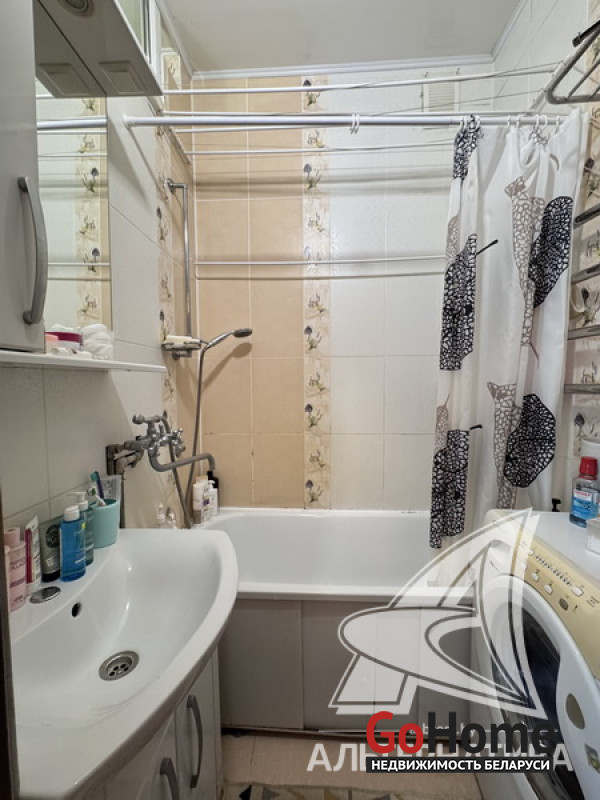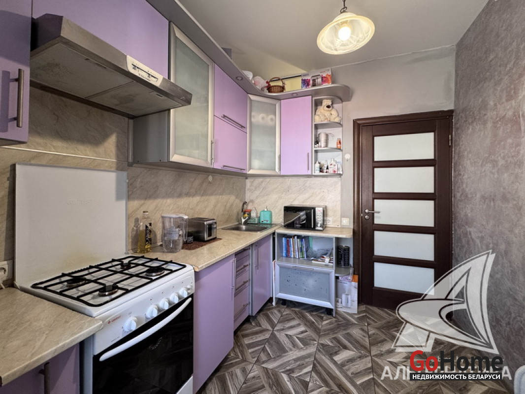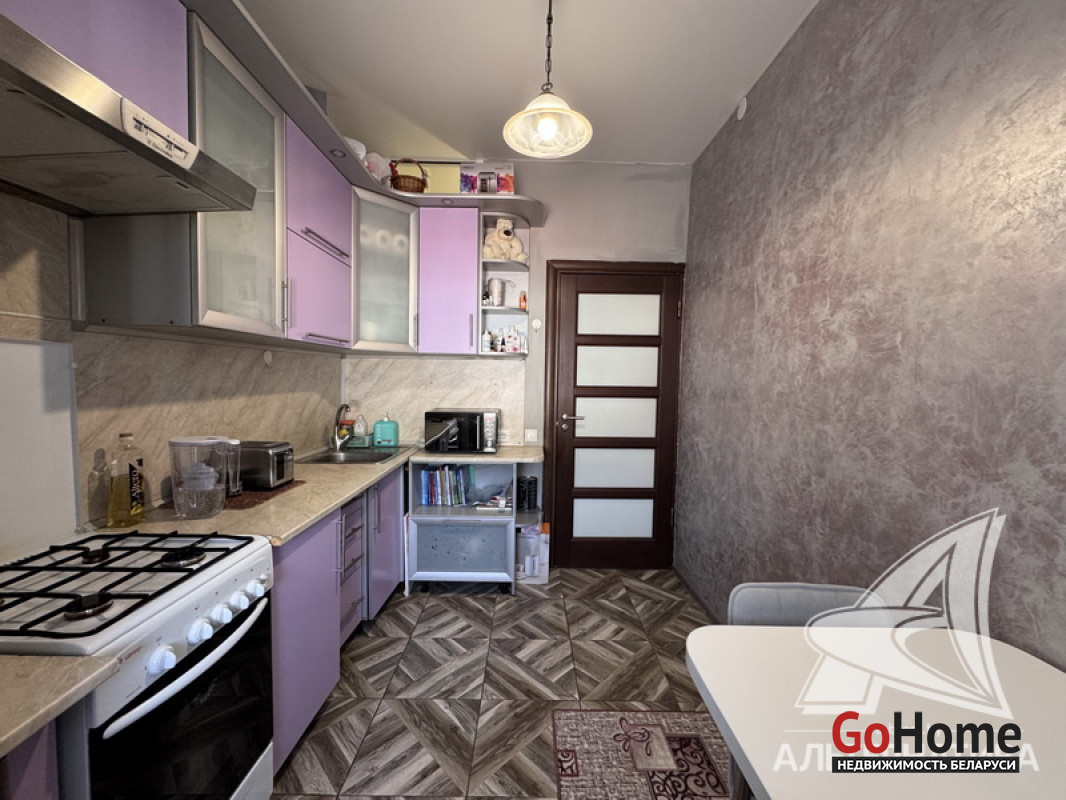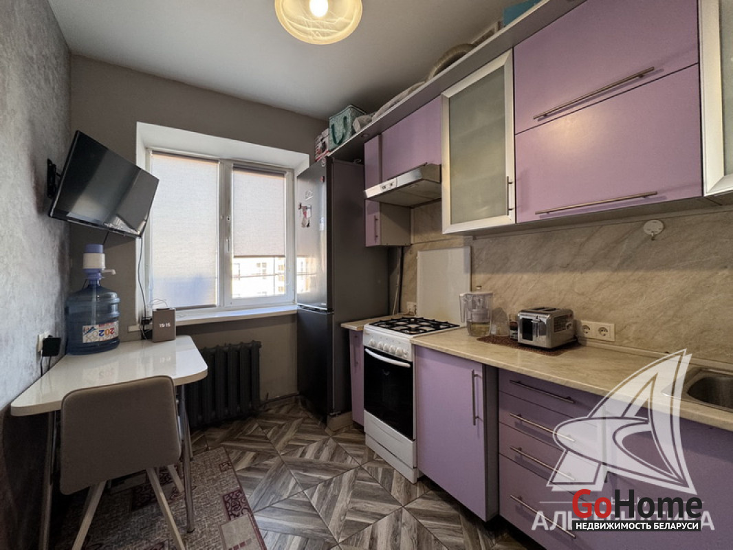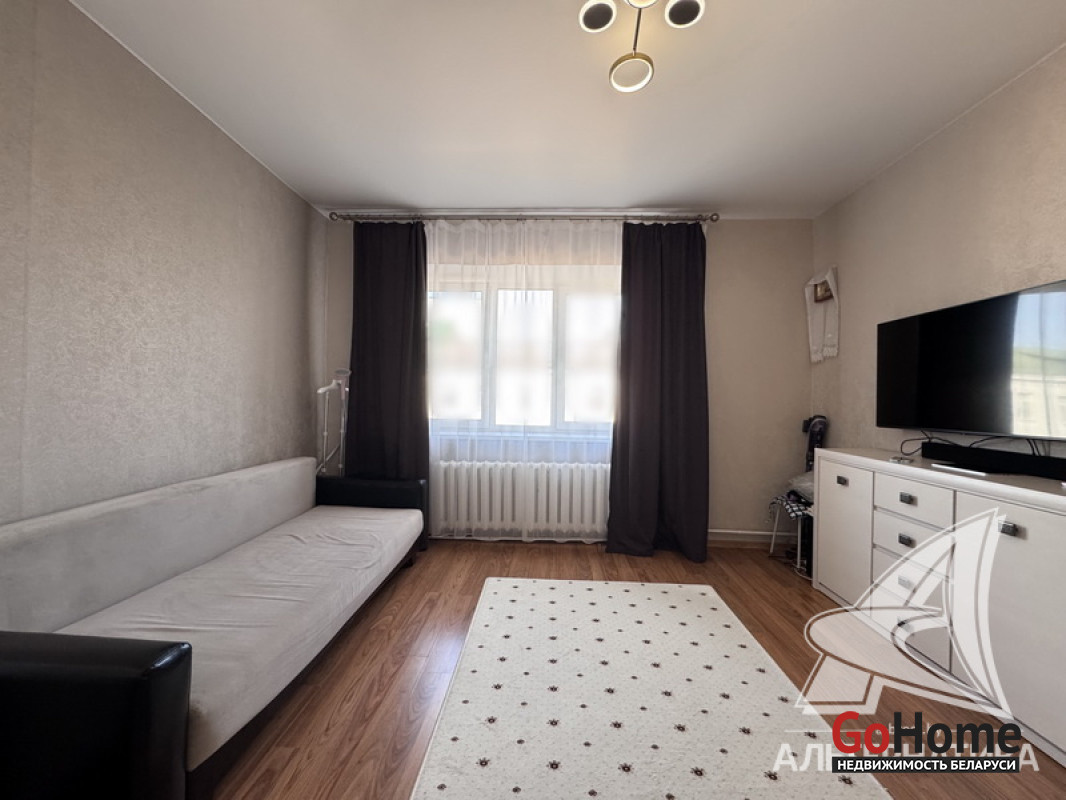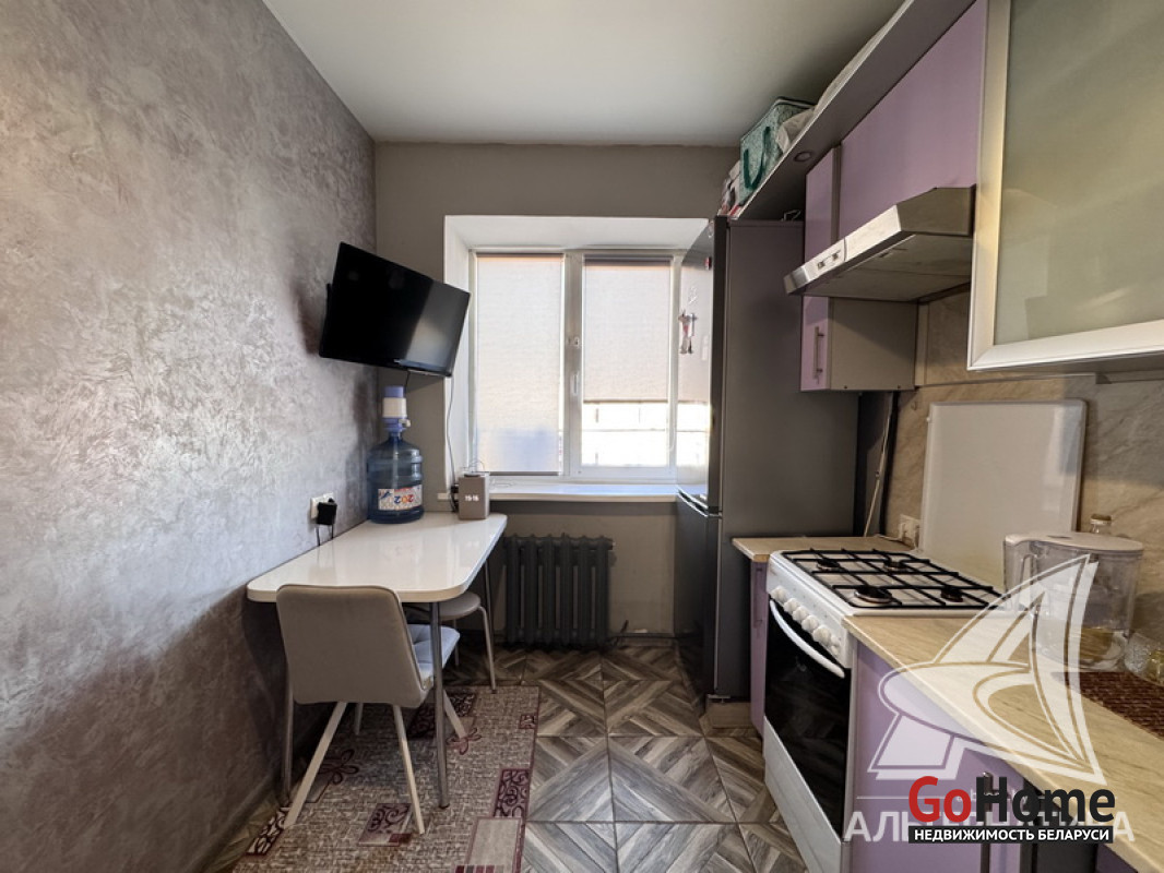 1-комнатная квартира, г. Брест, ул. Кирова, 1974 г.п., 5 / 5 кирпич, 35,2 / 35,2 / 19,2 / 7,1, санузел раздельный, подвал, стеклопакеты, межкомнатные двери - шпон, входная дверь металлическая, натяжные потолки (2,8 м), полы (положены на стяжку) - плитка (в кухне) и ламинат, на стенах фактурная отделка штукатуркой (в кухне) и обои (в комнате), проведена новая электропроводка (медь), домофон. Кухонный гарнитур, плита, вытяжка, шкаф-купе (в прихожей). Квартира с хорошим ремонтом. Во дворе игровая детская площадка, парковка для автомобилей. Лот - 260363