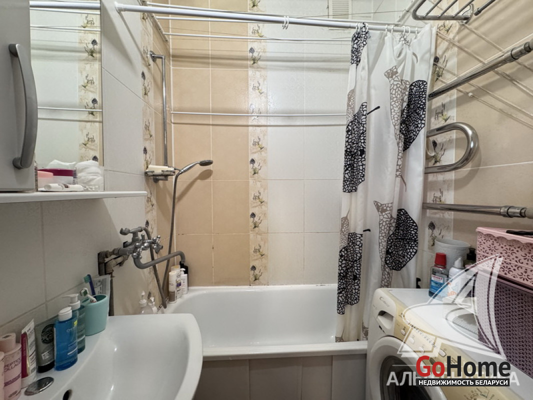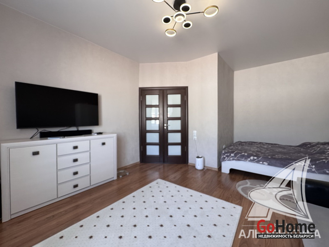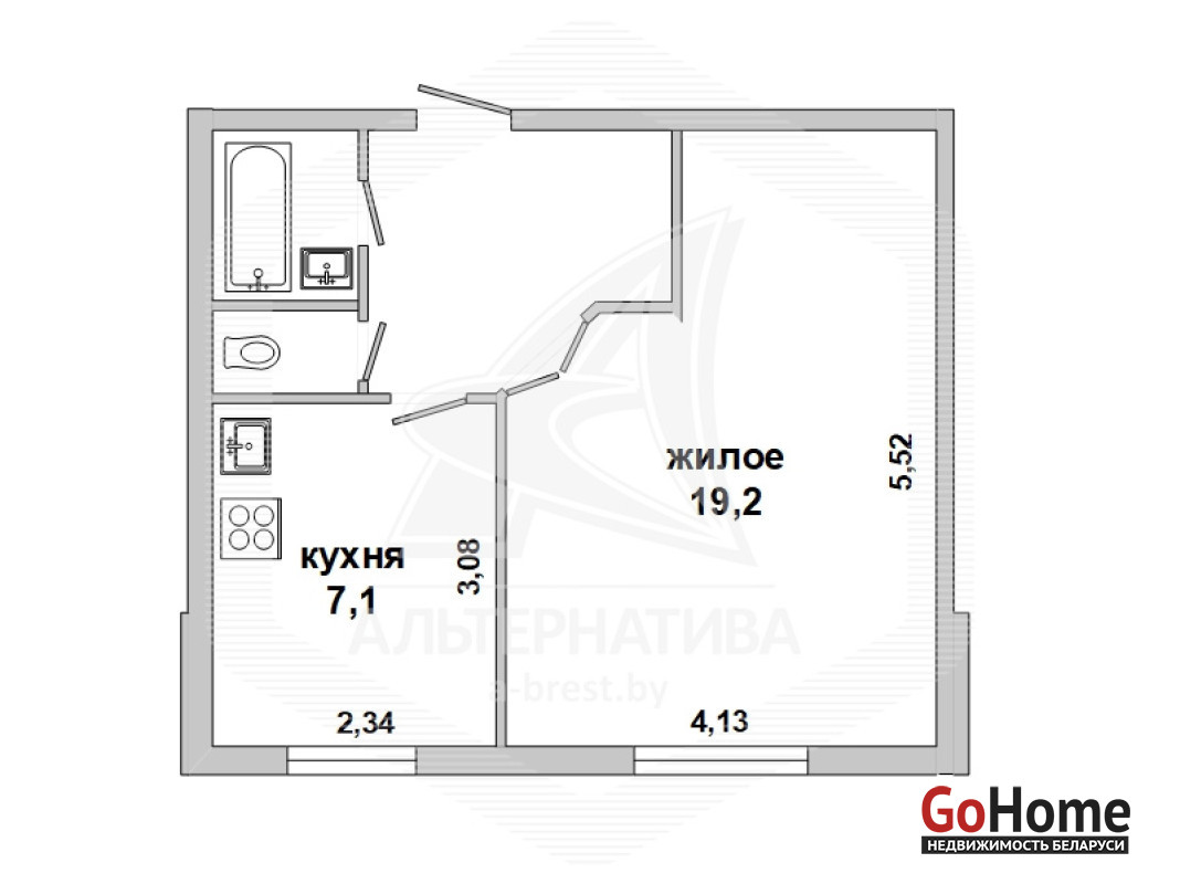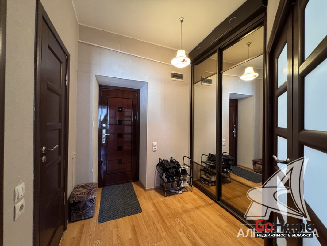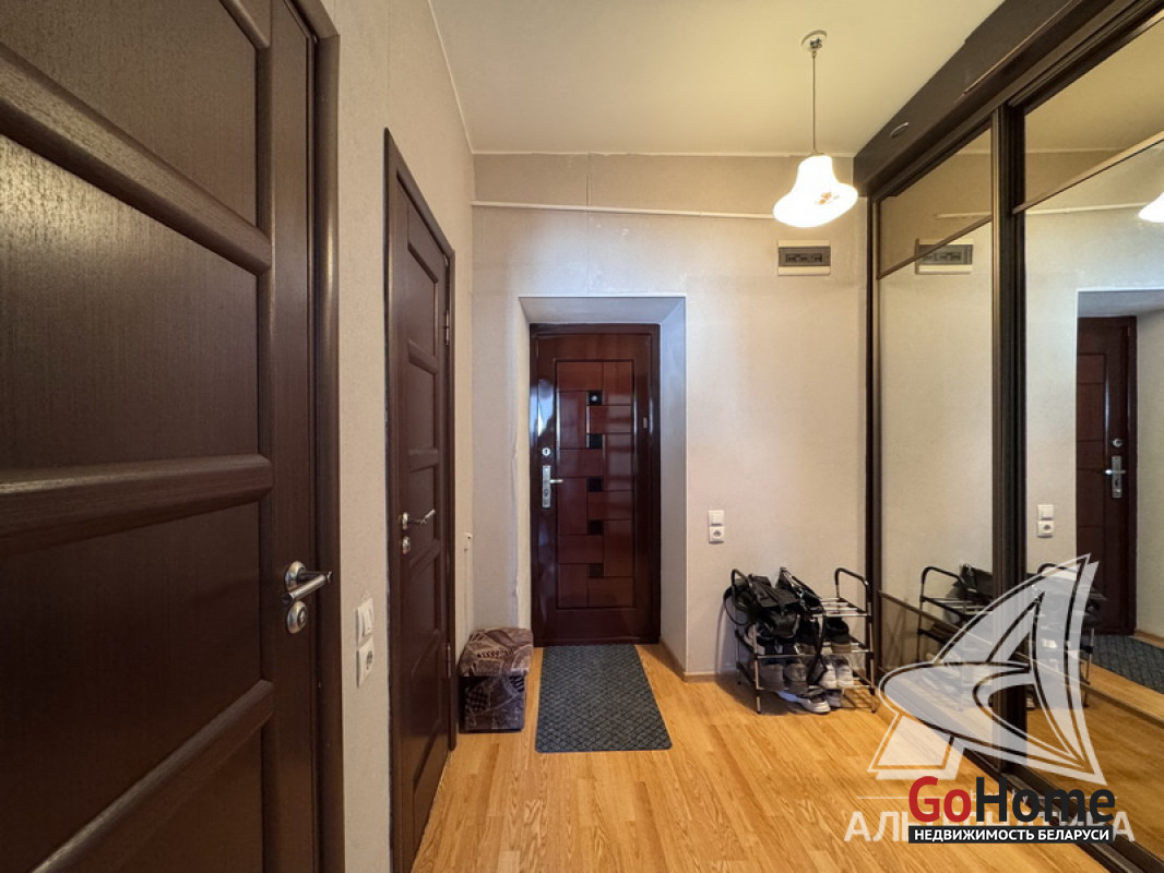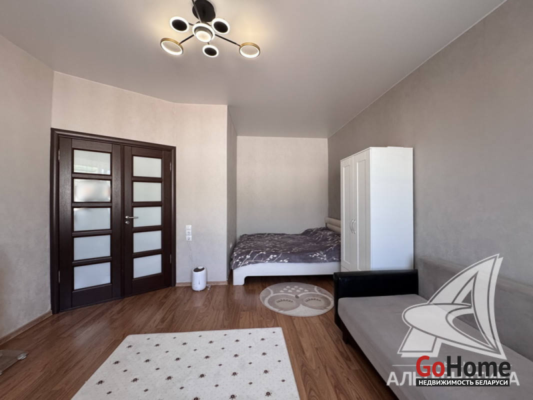 1-комнатная квартира, г. Брест, ул. Кирова, 1974 г.п., 5 / 5 кирпич, 35,2 / 35,2 / 19,2 / 7,1, санузел раздельный, подвал, стеклопакеты, межкомнатные двери - шпон, входная дверь металлическая, натяжные потолки (2,8 м), полы (положены на стяжку) - плитка (в кухне) и ламинат, на стенах фактурная отделка штукатуркой (в кухне) и обои (в комнате), проведена новая электропроводка (медь), домофон. Кухонный гарнитур, плита, вытяжка, шкаф-купе (в прихожей). Квартира с хорошим ремонтом. Во дворе игровая детская площадка, парковка для автомобилей. Лот - 260363