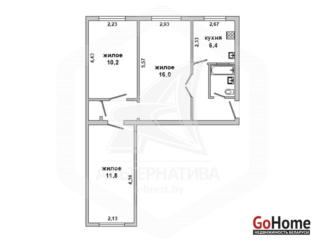 3-комнатная квартира, г. Брест, пр-т Машерова, 1960 г.п., 1 / 5 кирпич, 55,0 / 55,0 / 38,0 / 6,4, санузел совмещенный, подвал, деревянные окна, потолки - побелка, стены оклеены обоями, телефон, домофон. Мебель по договоренности. Квартира в жилом состоянии. Квартира расположена на две стороны. Одно окно выходит на Машерова. Хороший вариант под вывод в нежилой фонд. Торг! Лот - 193820