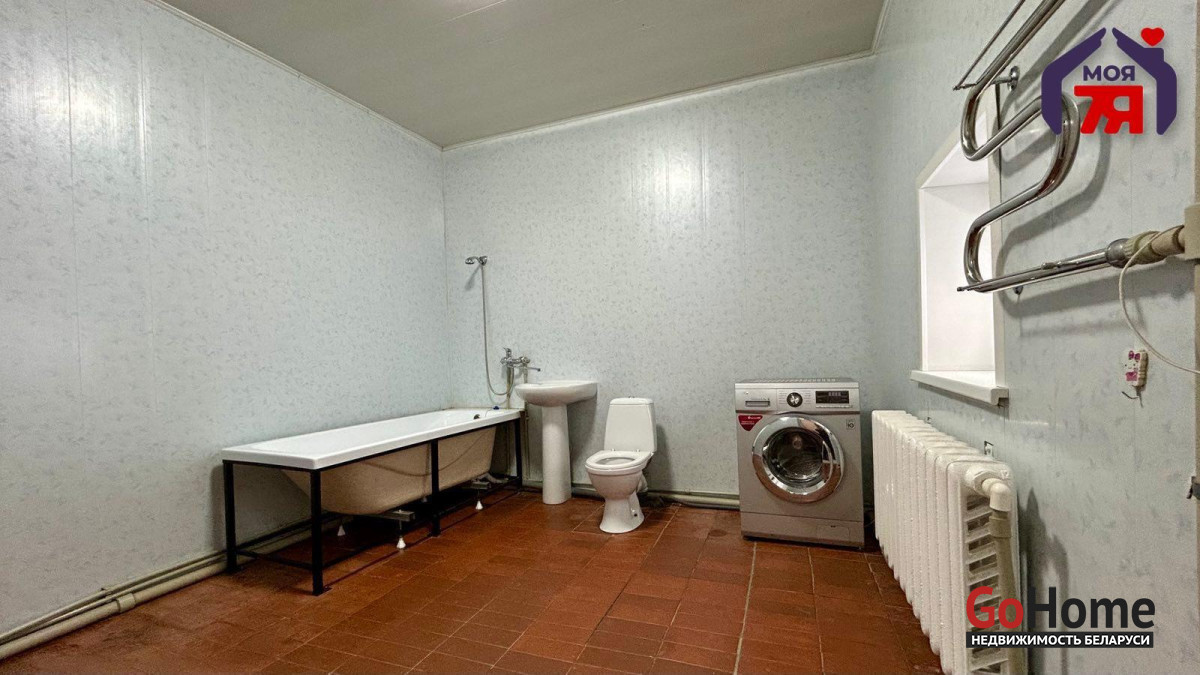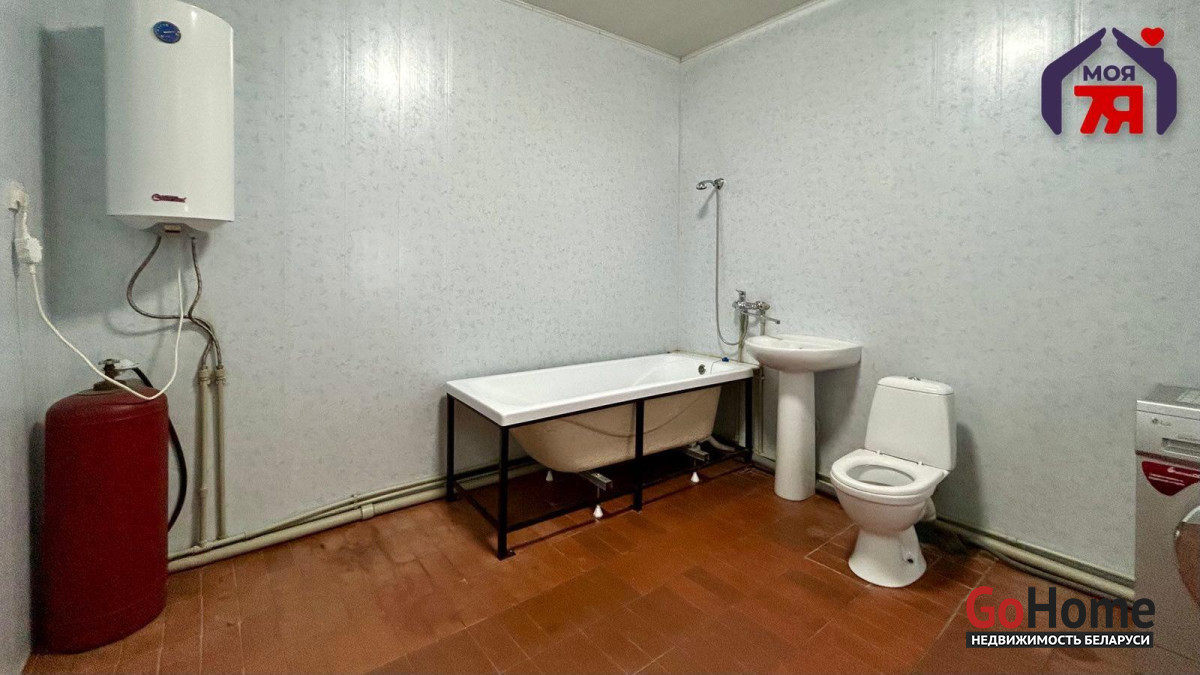 - Просторный санузел облицован керамической плиткой, что обеспечивает водостойкость и долговечность. Дополнительно в доме находится отдельная топочная — отличное решение для обслуживания и организации отопления.