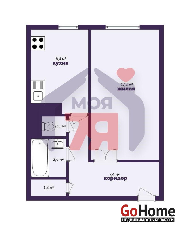 - Общая площадь квартиры составляет 37,8 кв.м., жилая – 17,2 кв.м., а кухня – 8,4 кв.м.