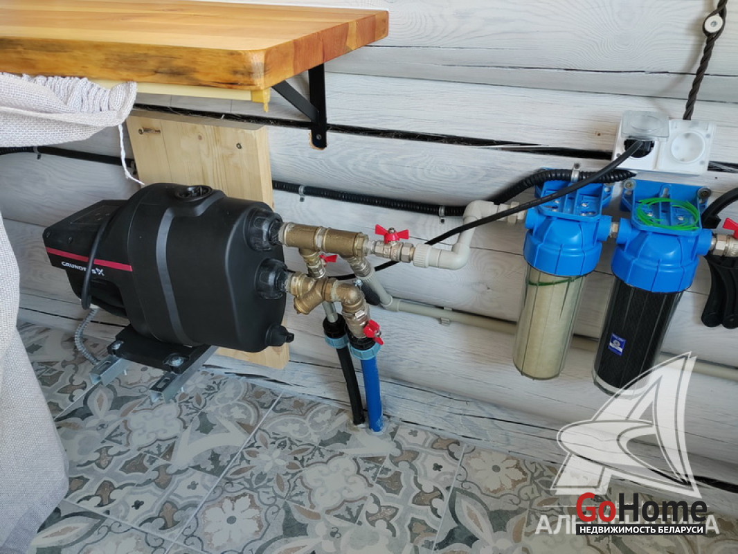 Коммуникации: отопление - газовый котел, газ - централизованный (в доме), водоснабжение - скважина и гидрофор, электричество - централизованное, канализация - автономная и централизованная (по улице).