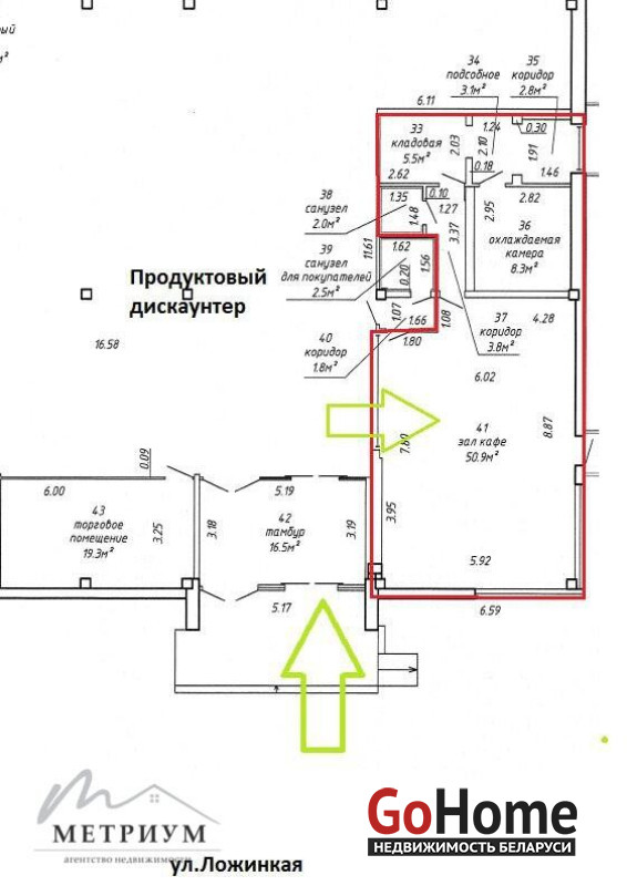 76,5 кв.м. Помещение в аренду в торговом центре на ул. Ложинской, 23 общей площадью 76,5 кв.м с возможностью увеличения площади до 120 кв.м, где появляется отдельный вход. Первый этаж одноэтажного отдельного здания. Проведено отопление и электроэнергия, высокая мощность. Хороший, современный ремонт. Парковка в шаговой доступности от торгового центра.