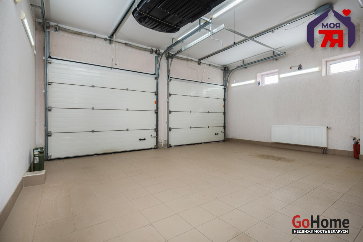 - Теплый гараж на два машиноместа оснащен автоматическими откатными роллетами, обеспечивая безопасность и удобство.