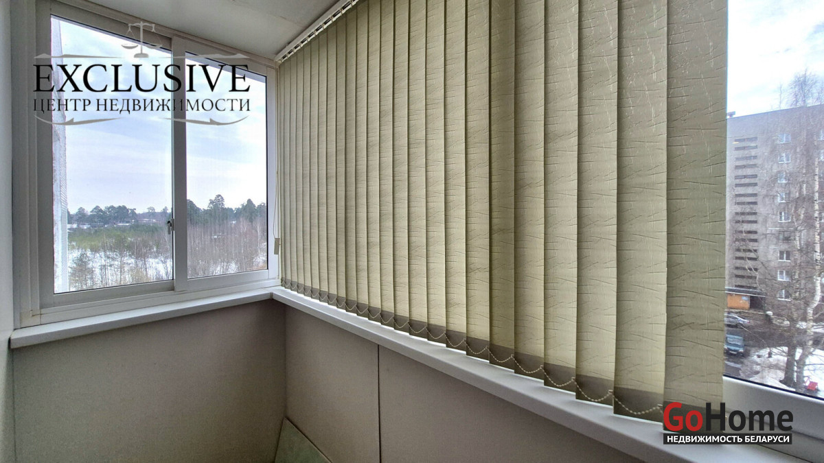 Просторный балкон застеклен раздвижной алюминиевой рамой - отличное место для хранения вещей или зона отдыха в теплый сезон.