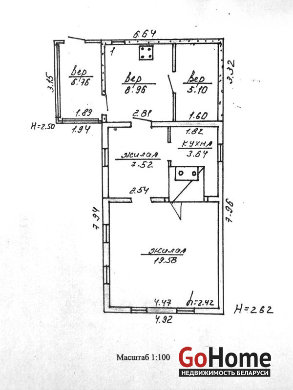 Остановка общественного транспорта в 5 минутах ходьбы.