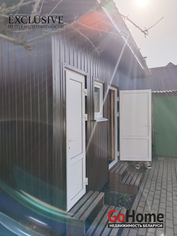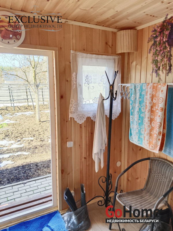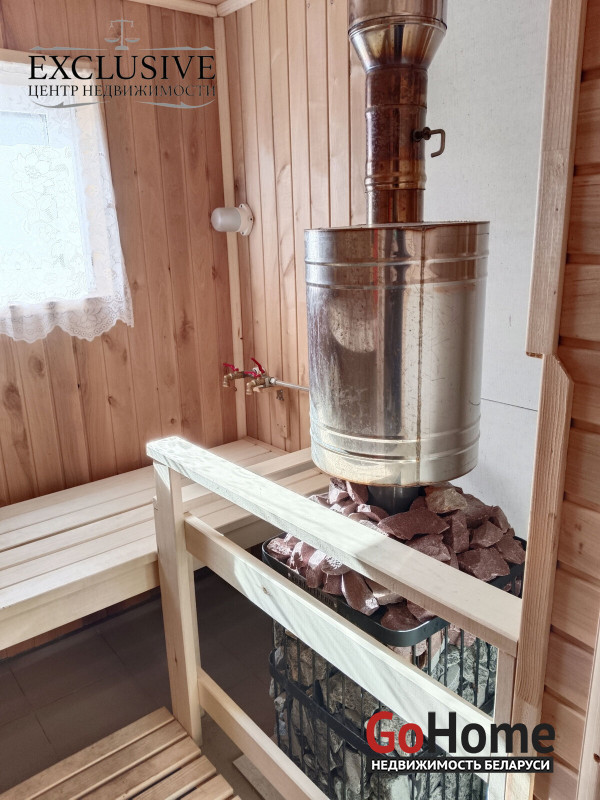 На территории новая баня с душем.