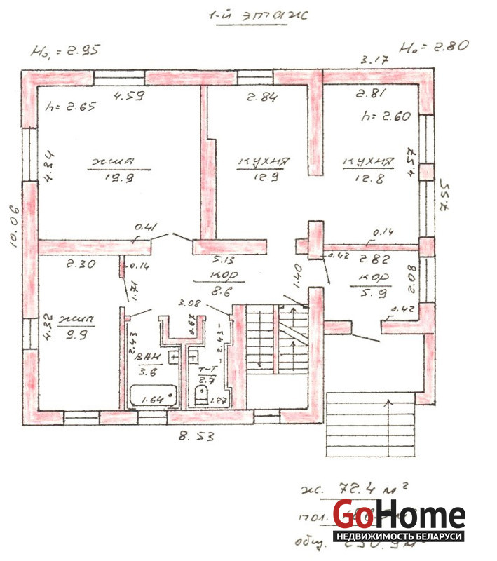 Общая площадь дома 231 кв. м., год постройки 1997 г. Стены из кирпича,